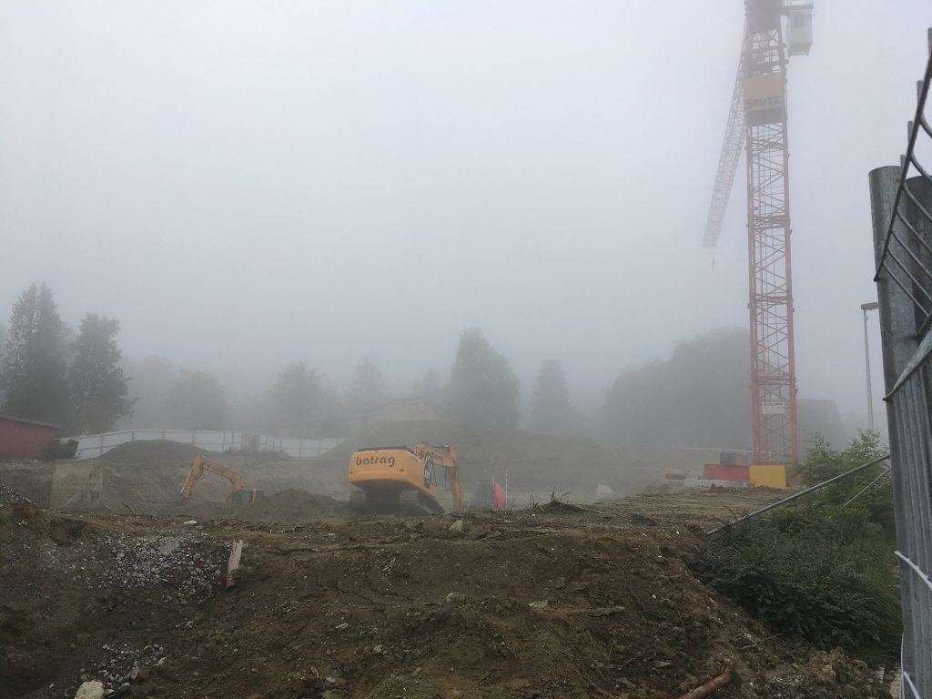 Zur Zeit kann man am Ekkharthof Bagger in ihrem natürlichen Habitat beobachten. (Im Bild: Seltene Aufnahme der als scheu geltenden Bagger am Futterloch.)