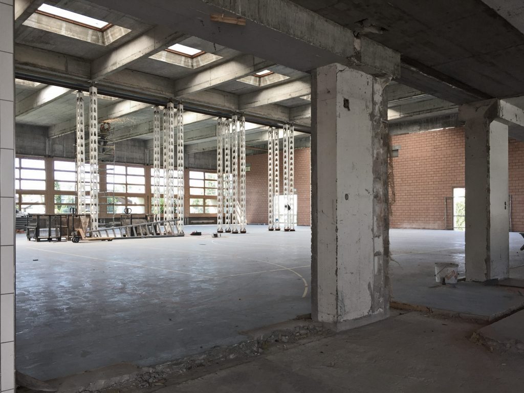 Besuch in der Werkhalle einer stillgelegten, sovjetrussischen Raketenstation Die Halle im Rohbau