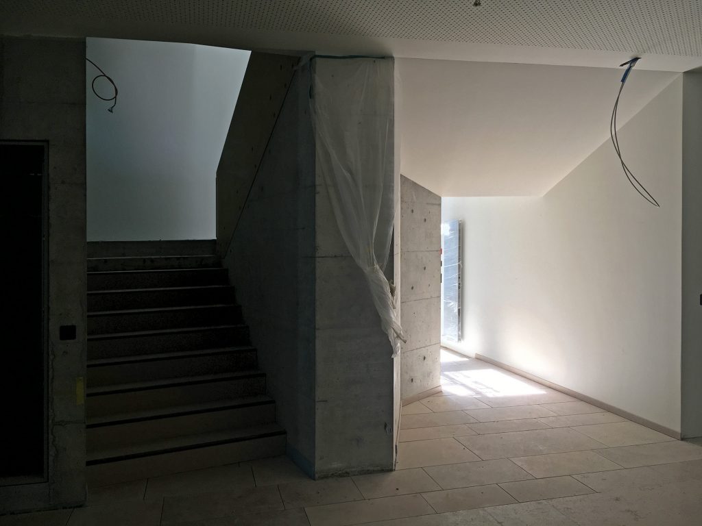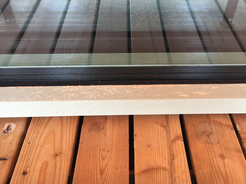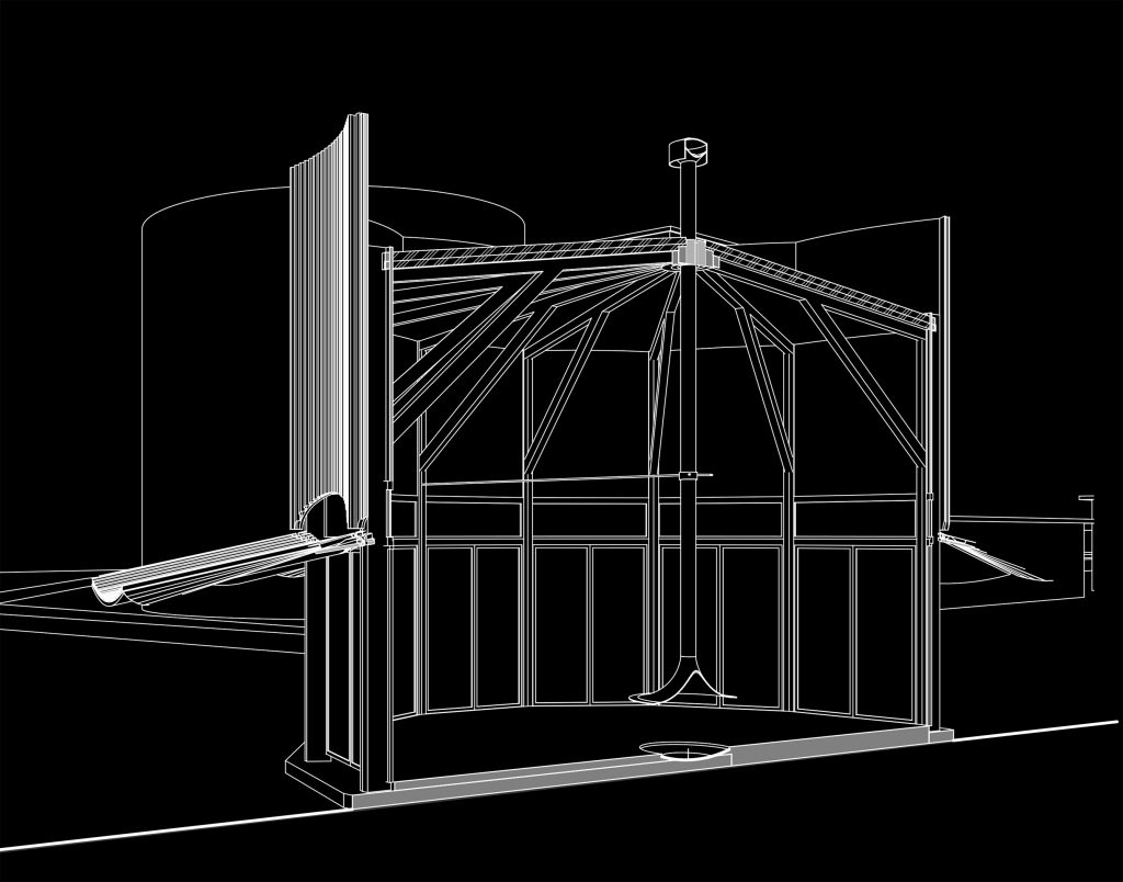 Wir hatten immer Bedenken, ob die sehr transparenten, eisenoxidarmen Gläsern des Gemeinschaftsgebäude zu einer Falle für Vögel werden könnte. Doch nach einigen Monaten in Betrieb ist noch kein einziger Vogel zu Tode gekommen. Es ist von einer seltenen Undankbarkeit der Vogelwelt, dass sie nun zum Angriff übergeht – eine Gruppe von Raben oder Krähen sammelt sich täglich am Gebäude und zerstört ohne Grund und Vorwand die untere Abdeckleiste der Pfosten-Riegelverglasung: ein kleiner Trupp von Vögeln setzt sich vor die Fenster und hakt wie von Sinnen auf die mit Ölfarbe gestrichene Holzleiste ein.