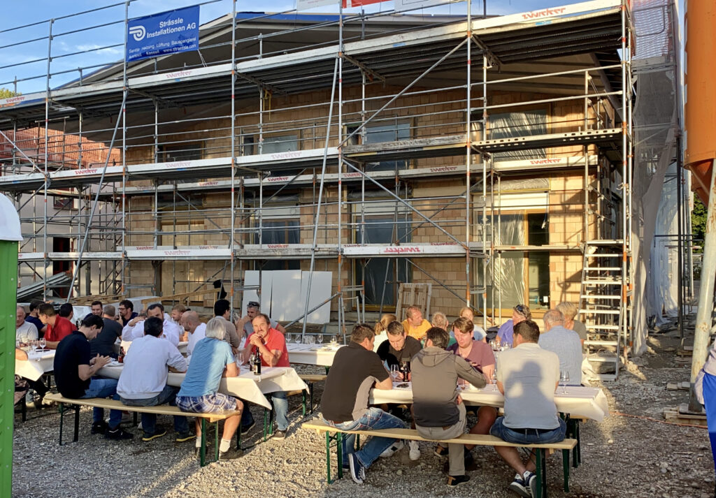 Gerade noch vor den Sommerferien konnten wir zusammen mit den Handwerksbetrieben, der Baukommission, den Planenden und Vertreterinnen der Schule die Aufrichte der Erweiterung der Schulanlage in Landschlacht feiern. Wir wünschen allen Projektbeteiligten schöne Sommerferien und bedanken uns herzlich für die saubere Arbeit – und bei der Bauherrschaft für das schöne Fest!