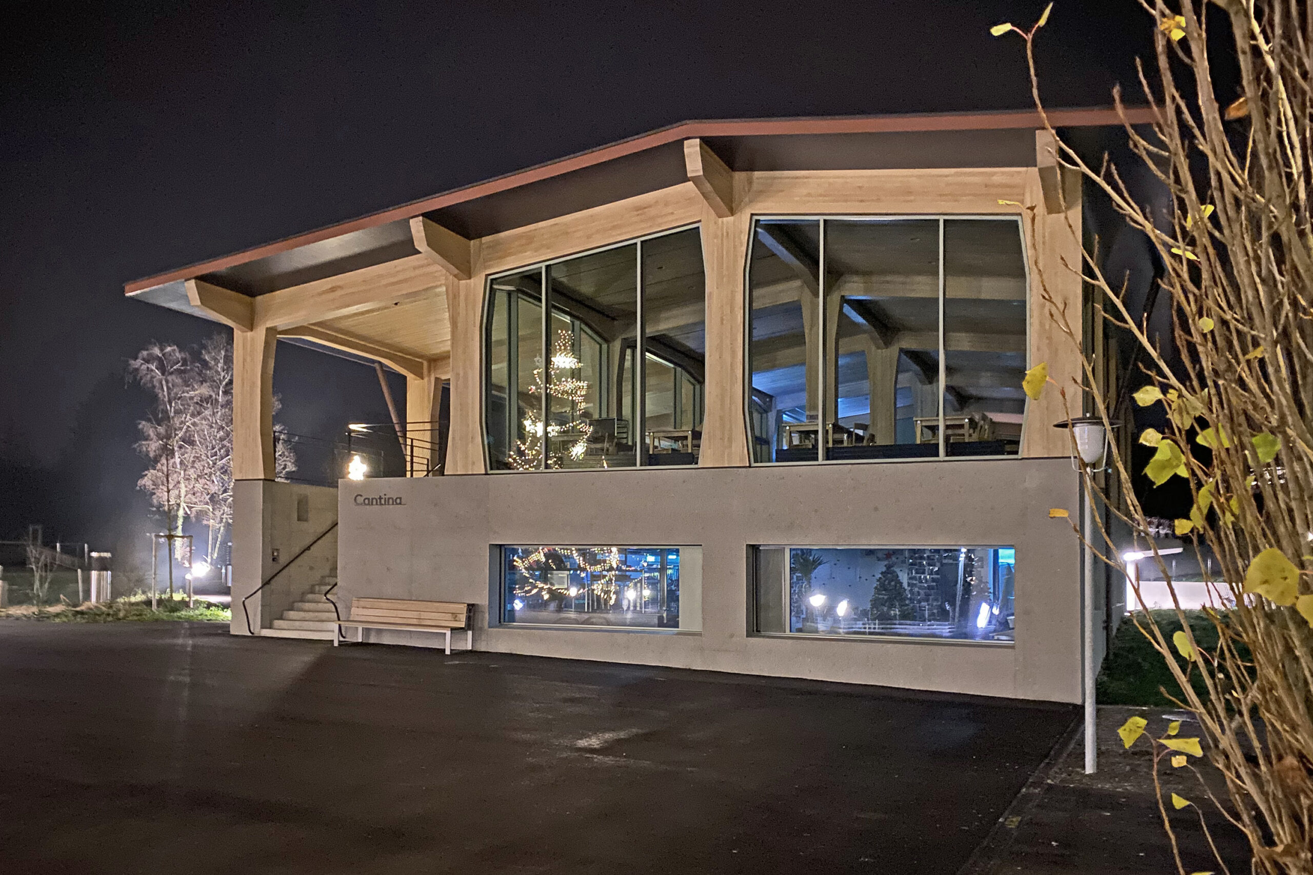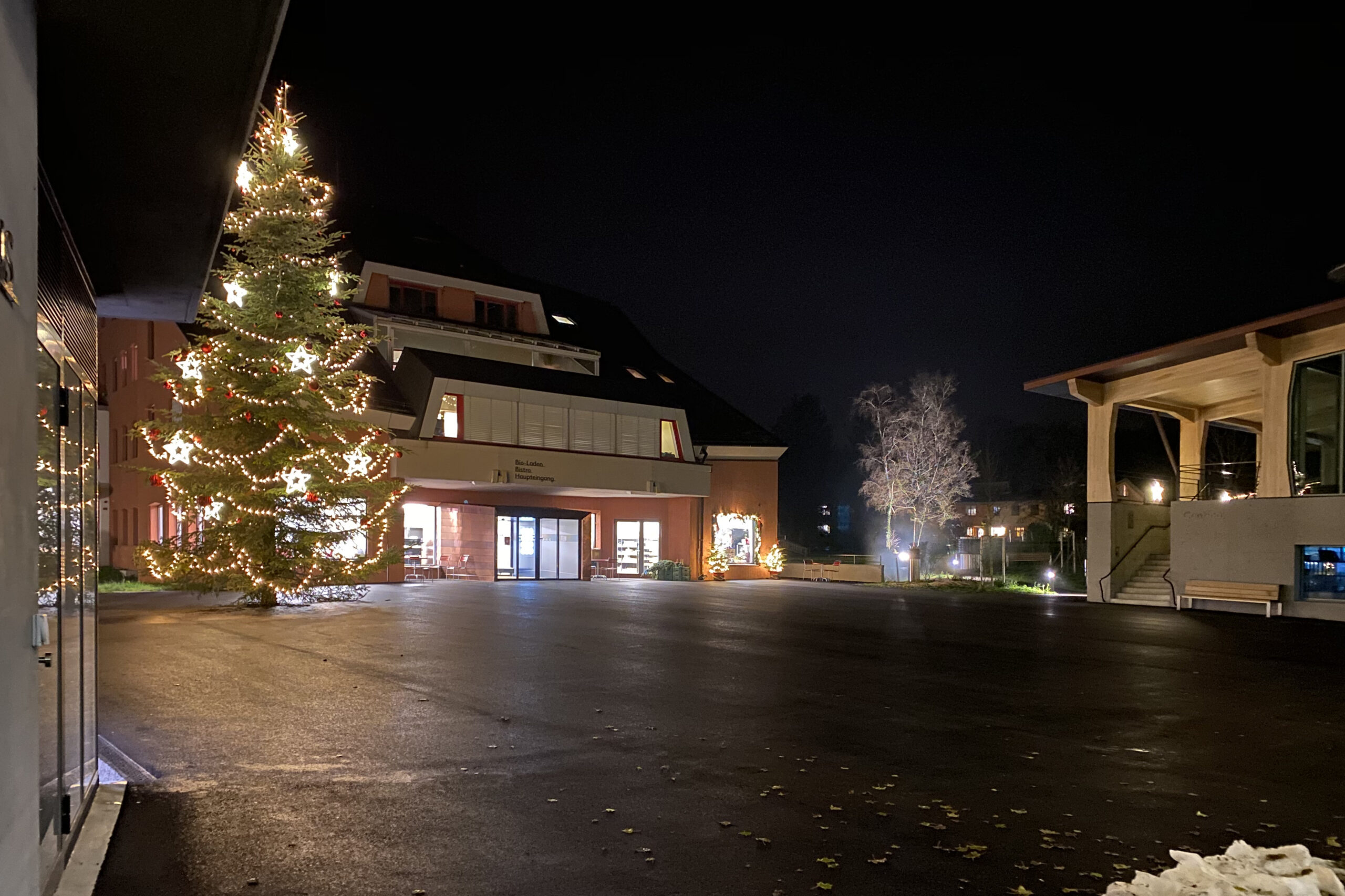 Die Halle ist ebenso das räumliche Zentrum des Hauses wie jenes des täglichen Lebens. Ankommen, Wohnen, Essen, Freitzeit, Bewegung – alles findet hier statt: Ein Tisch in der Mitte für Gäste. Eine dämmrige Nische als Lounge für das Buch, den Cognac und die Zigarette am Abend. Eine helle Nische unter der Treppe für Hausaufgaben, für Tee, fürs Lesen, fürs Nähen. Ein Ofen mit Bänkli für jene, die aus der Kälte kommen.