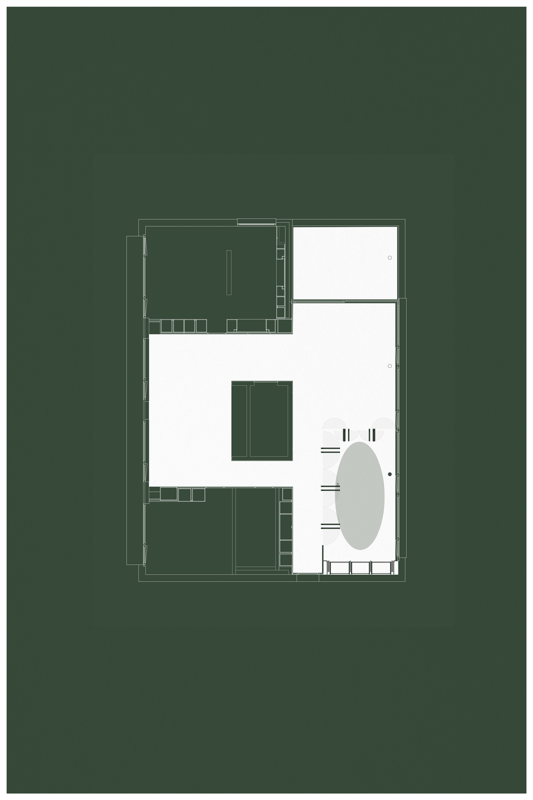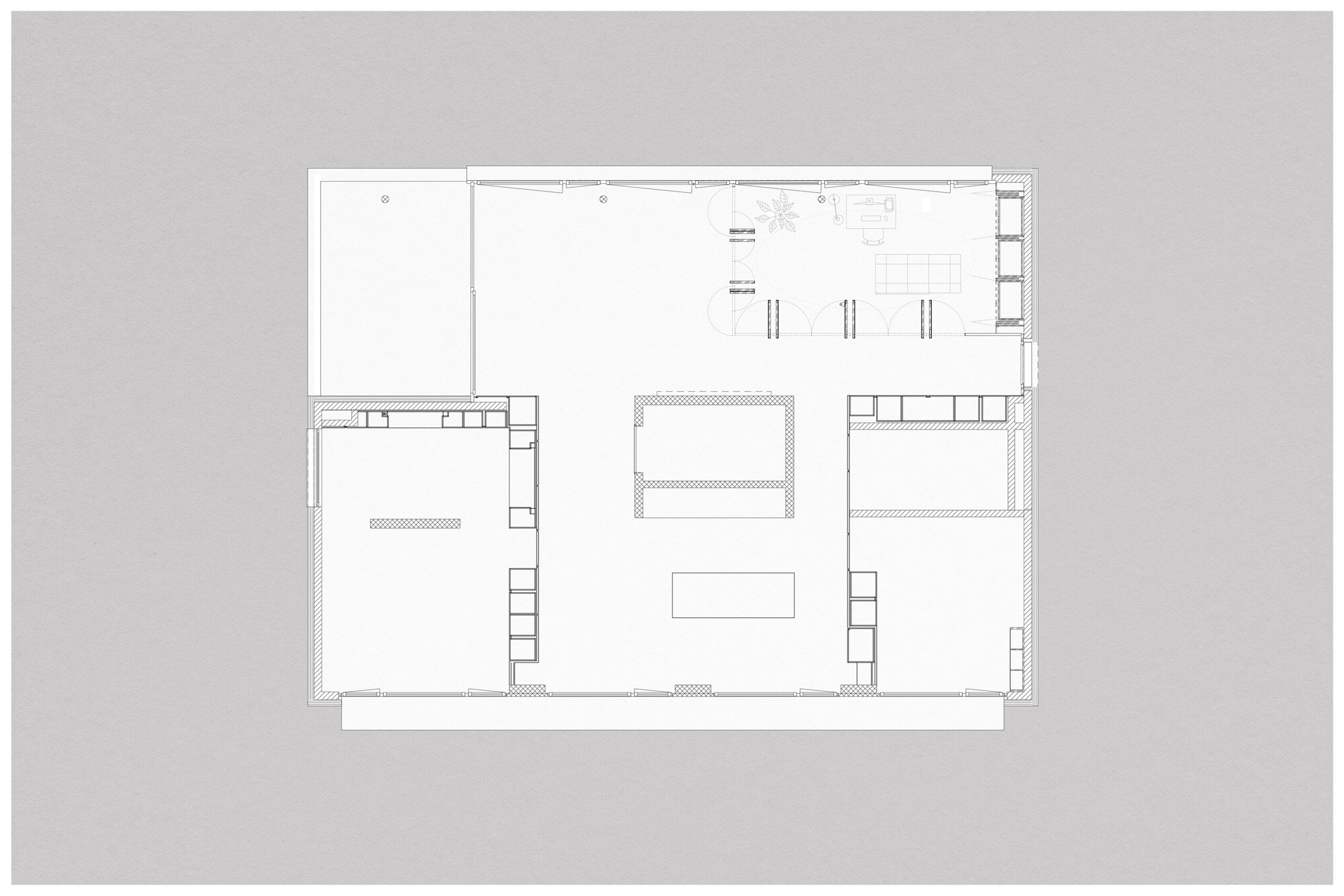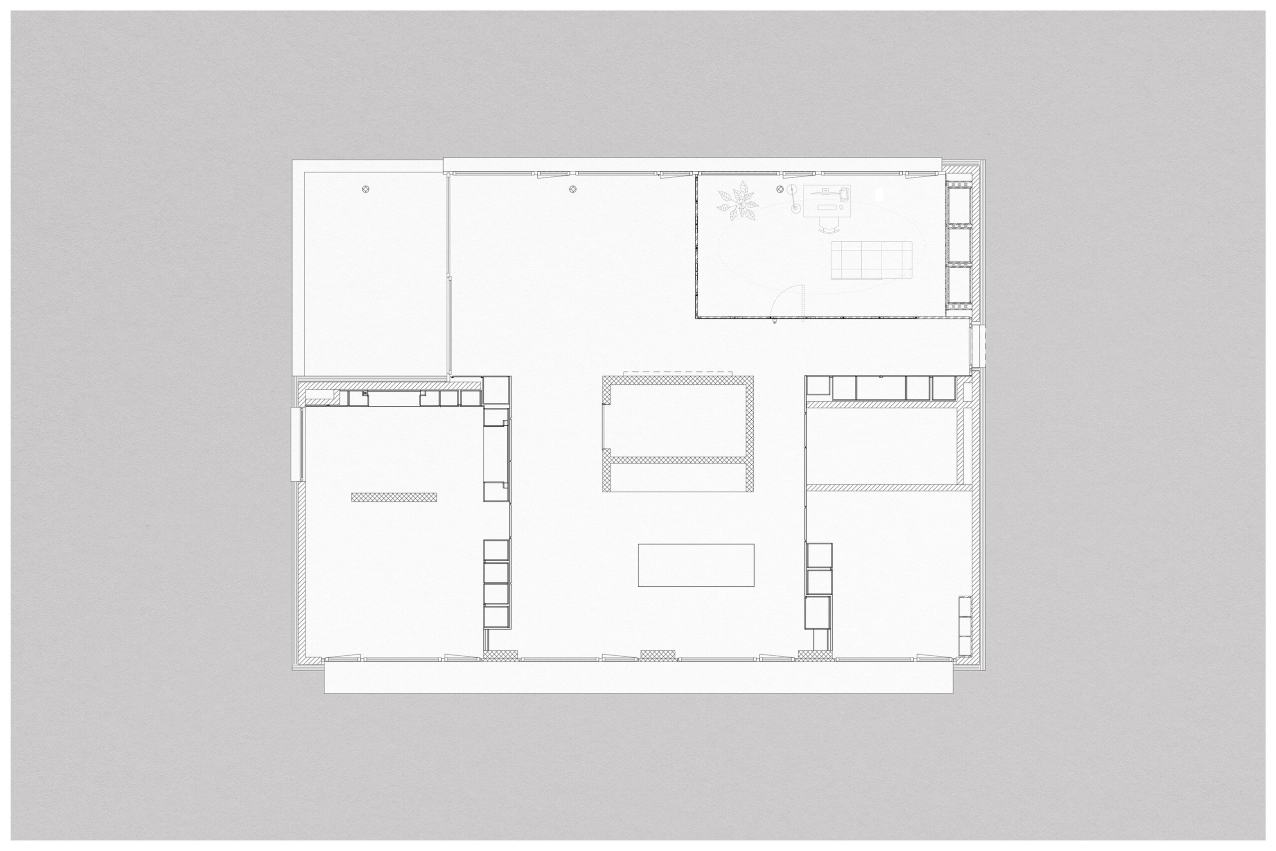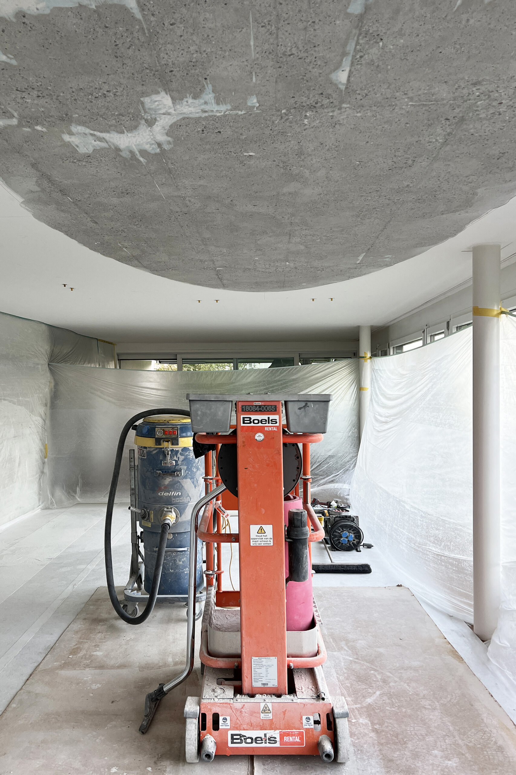 Die bestehende, verputzte Betondecke wird partiell freigelegt und geschliffen