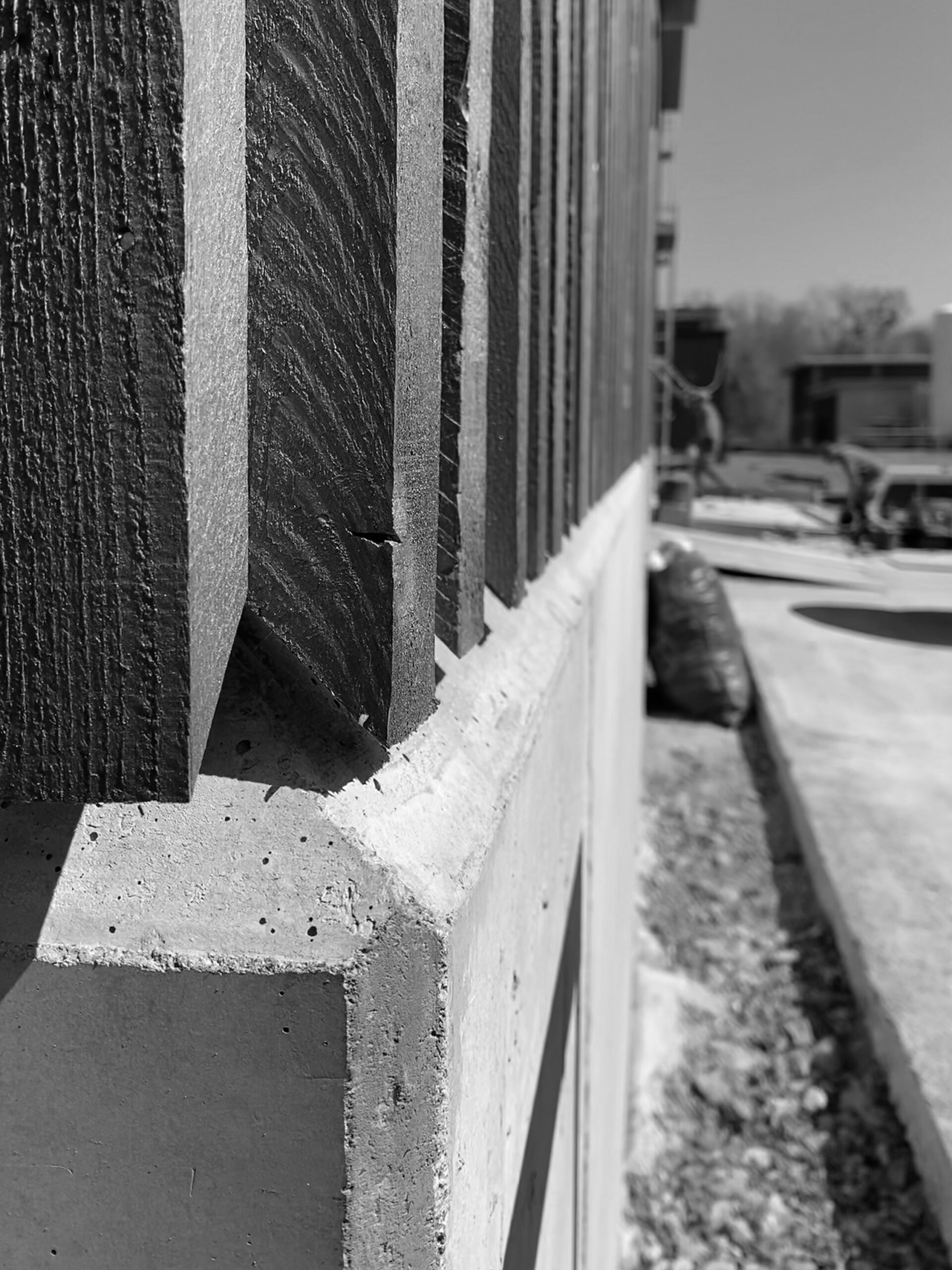 Die Haltbarkeit der Holzlatten wird durch den abgeschrägten Sockel erhöht (Spritzwasser, Schnee)