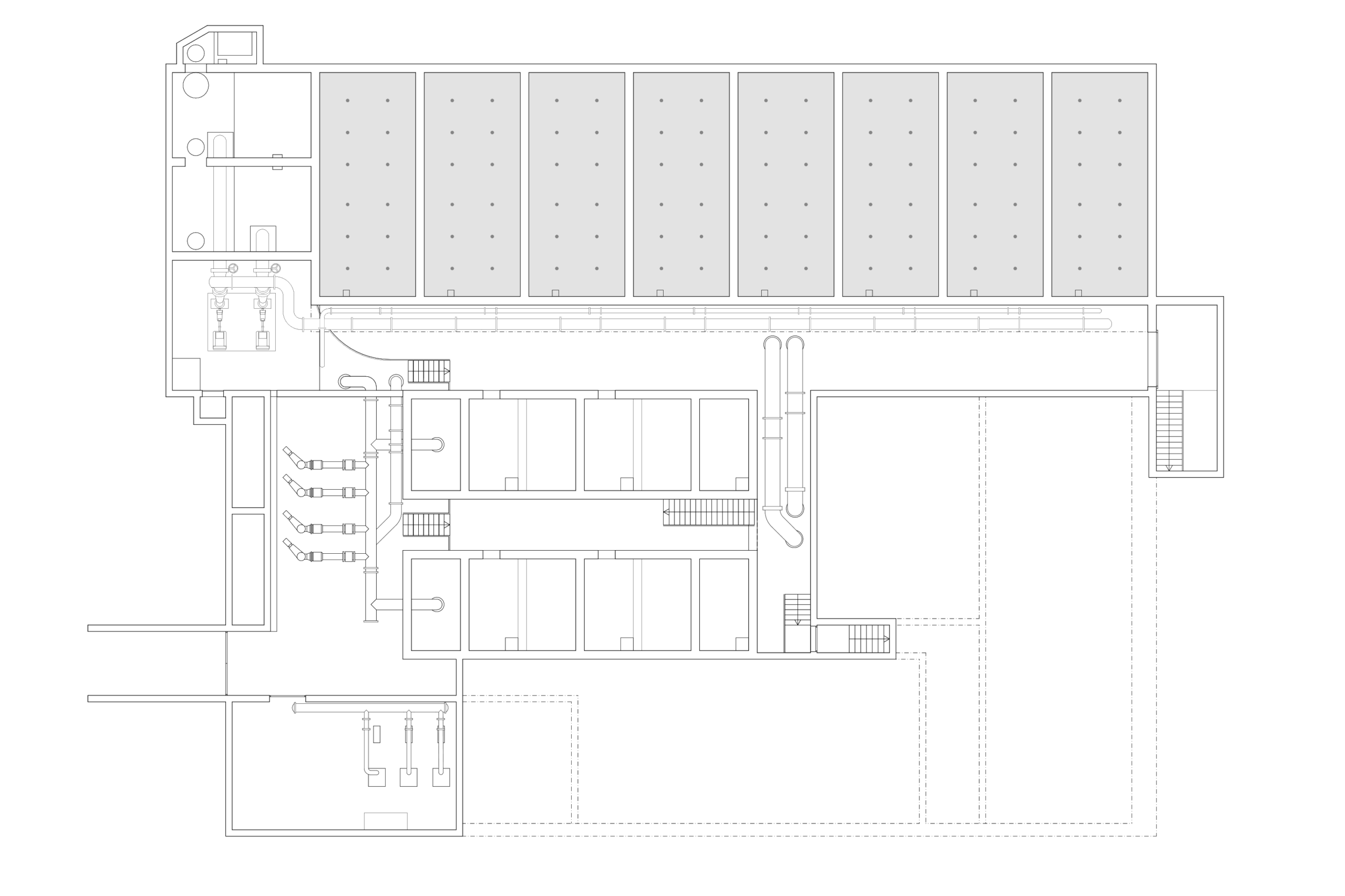 Für das Gebäude einer neuartigen Klärstufe «Elimination von Mikroverunreinigungen» wurden wir für die architektonische Gestaltung beigezogen. Ein Auftrag, der zu einer neuen Gesamtstrategie für das Areal der AVA Altenrhein führt. (vgl. unten). Der Neubau EMV ist die erste Baumassnahme, die dieser Strategie folgt. Er ist so situiert, dass er mit dem Bestand eine neue Ordnung – einen Werkhof oder, als Stadtraum gelesen, einen Platz – bildet. Zum alten Rhein hin wird ein höheres Volumen ausgebildet, welches die Anlage begrenzt und räumlich abschliesst.