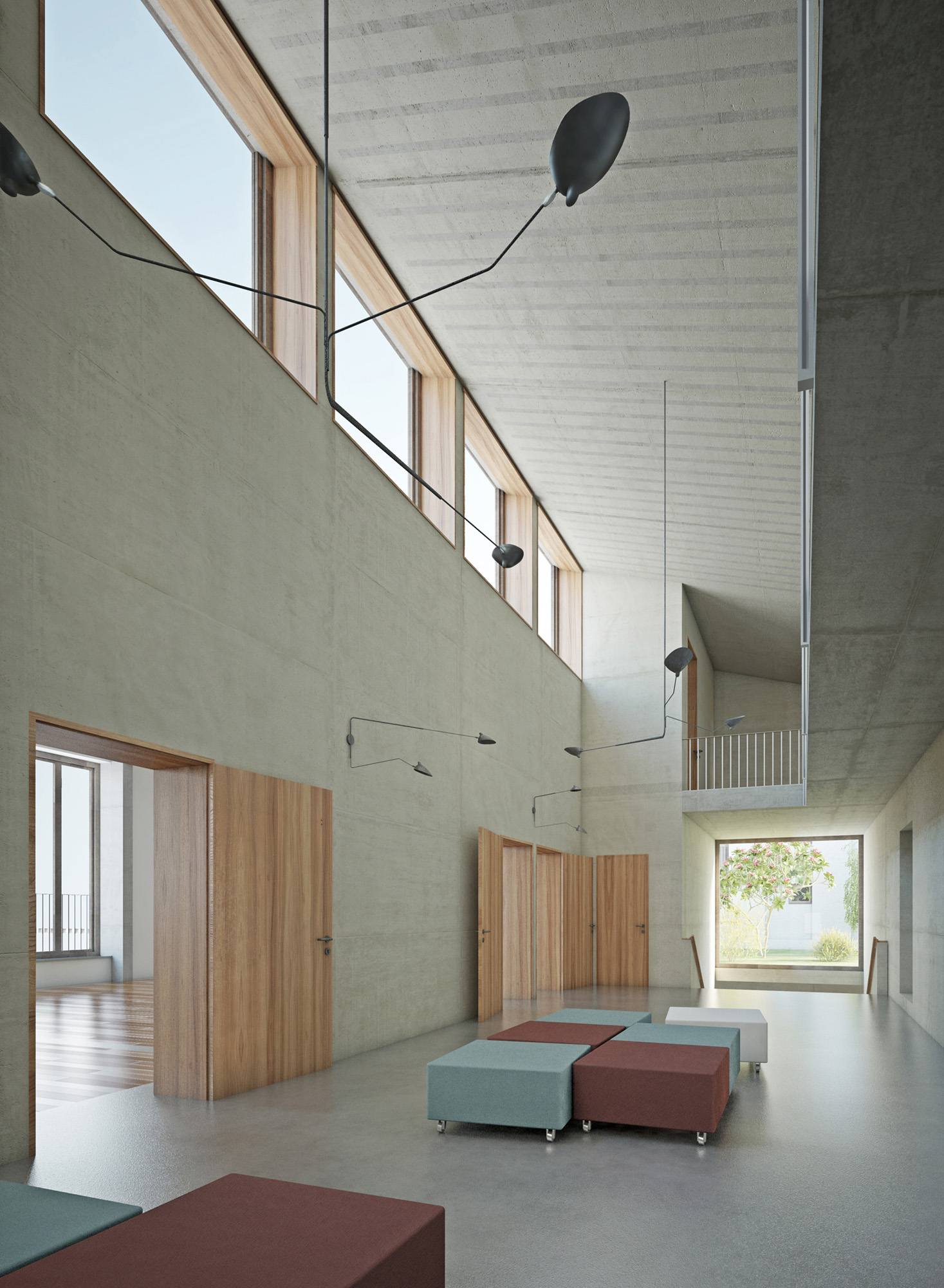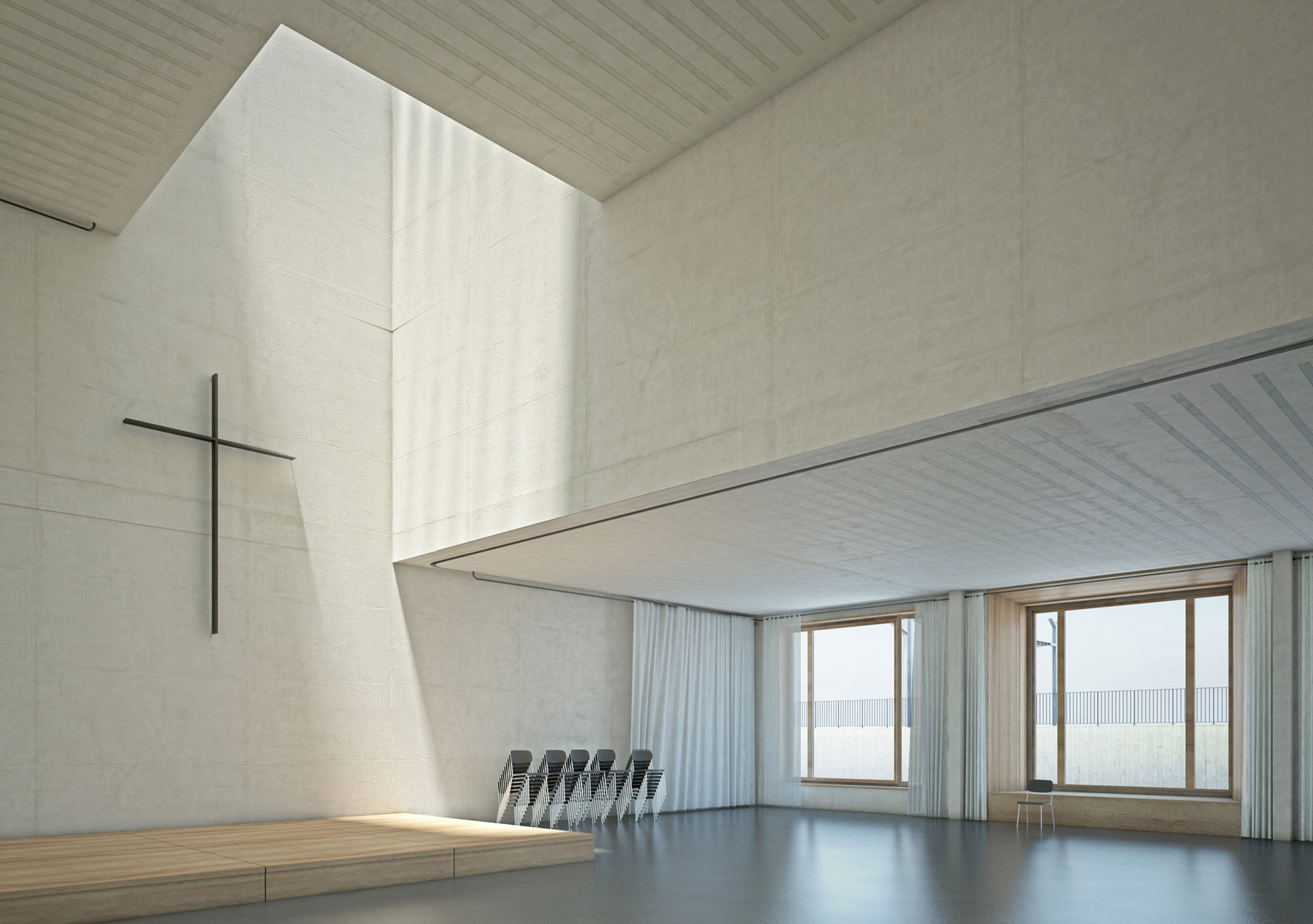 Grosser Saal mit Kirchenfunktion und Mehrzwecknutzung, Kleiner Saal, Gastroküche, diverse Büros und Gemeinderäume, Wohnungen