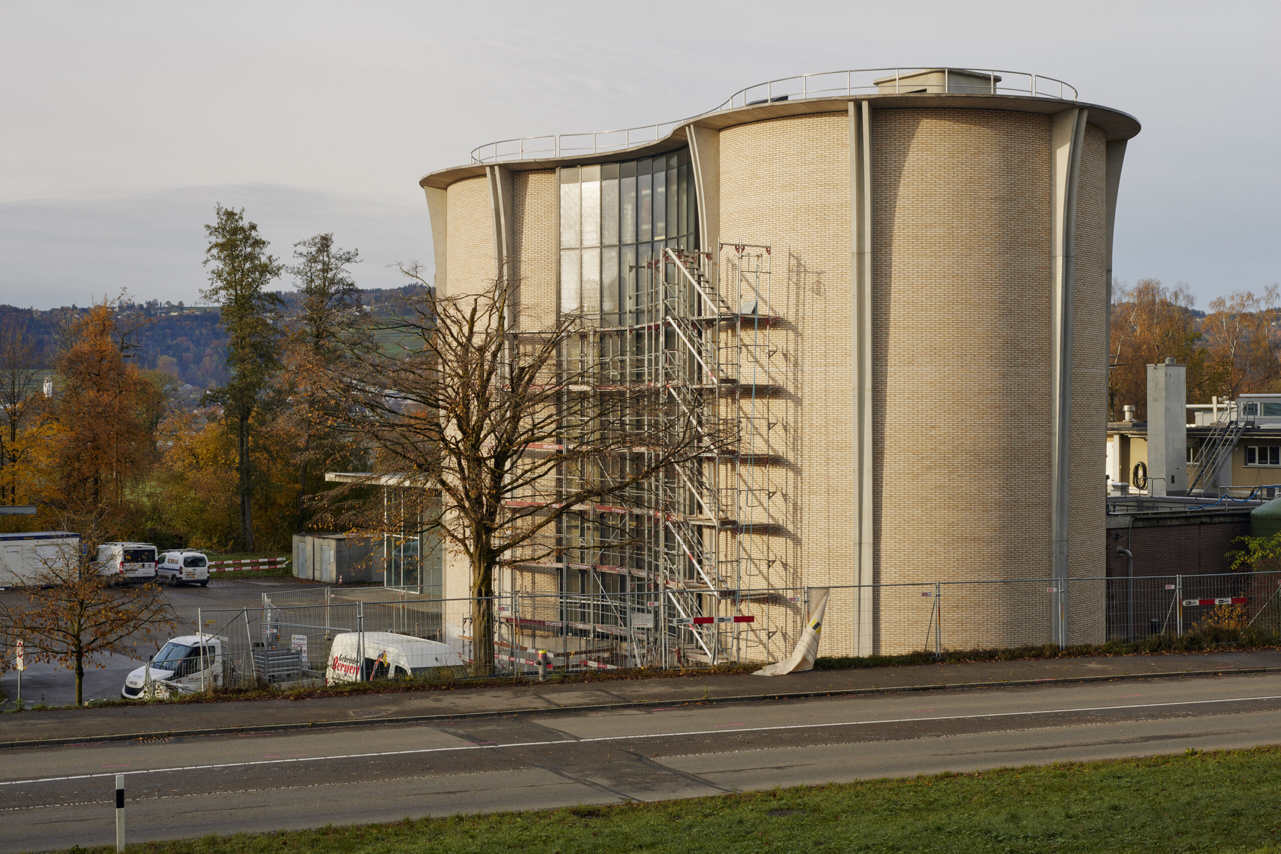 Mit den neuen Faultürmen, einem weiteren Teil der technischen Anlagen, führen wir die Sprache der industriellen Backsteinbauten weiter. Schliesslich übernehmen die neuen Bauten mit der Schlammfaulung exakt die Aufgabe der beiden historischen Türme - angepasst auf die heute anfallenden Mengen als Klärschlamm. Die beiden historischen Türme werden erhalten und ressourcenschonend zu Gasspeicher umgenutzt. Mit den neuen Faultürmen dürfte der Bedarf der Stadt Uster auf Jahre hinaus gedeckt sein und mit der nun längeren Verweildauer des Klärschlamms in den grösseren Volumen kann zudem die Energieausbeute der Faulung deutlich erhöht werden.