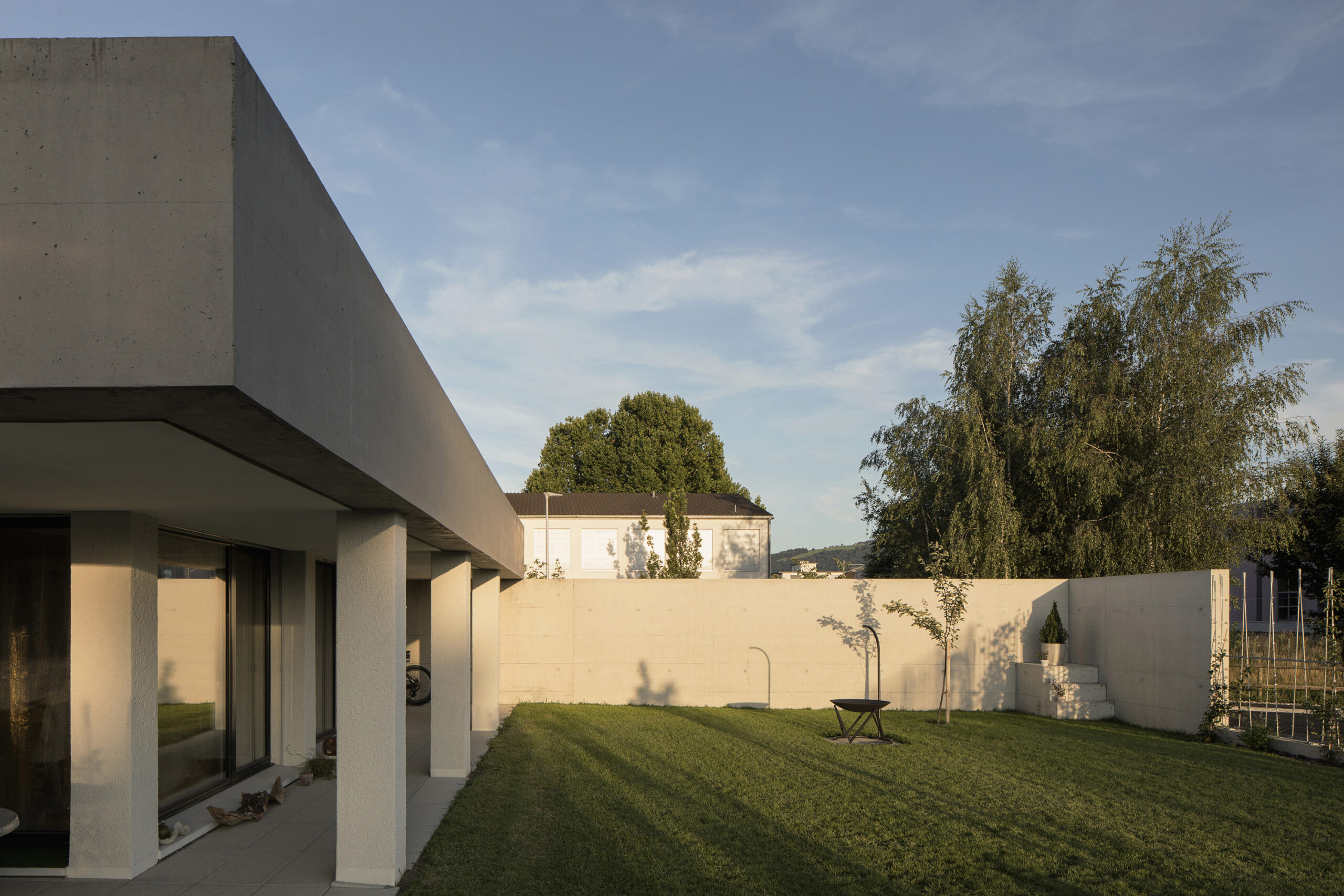 Gartenhof und neuer Dachrand aus eingefärbtem Beton