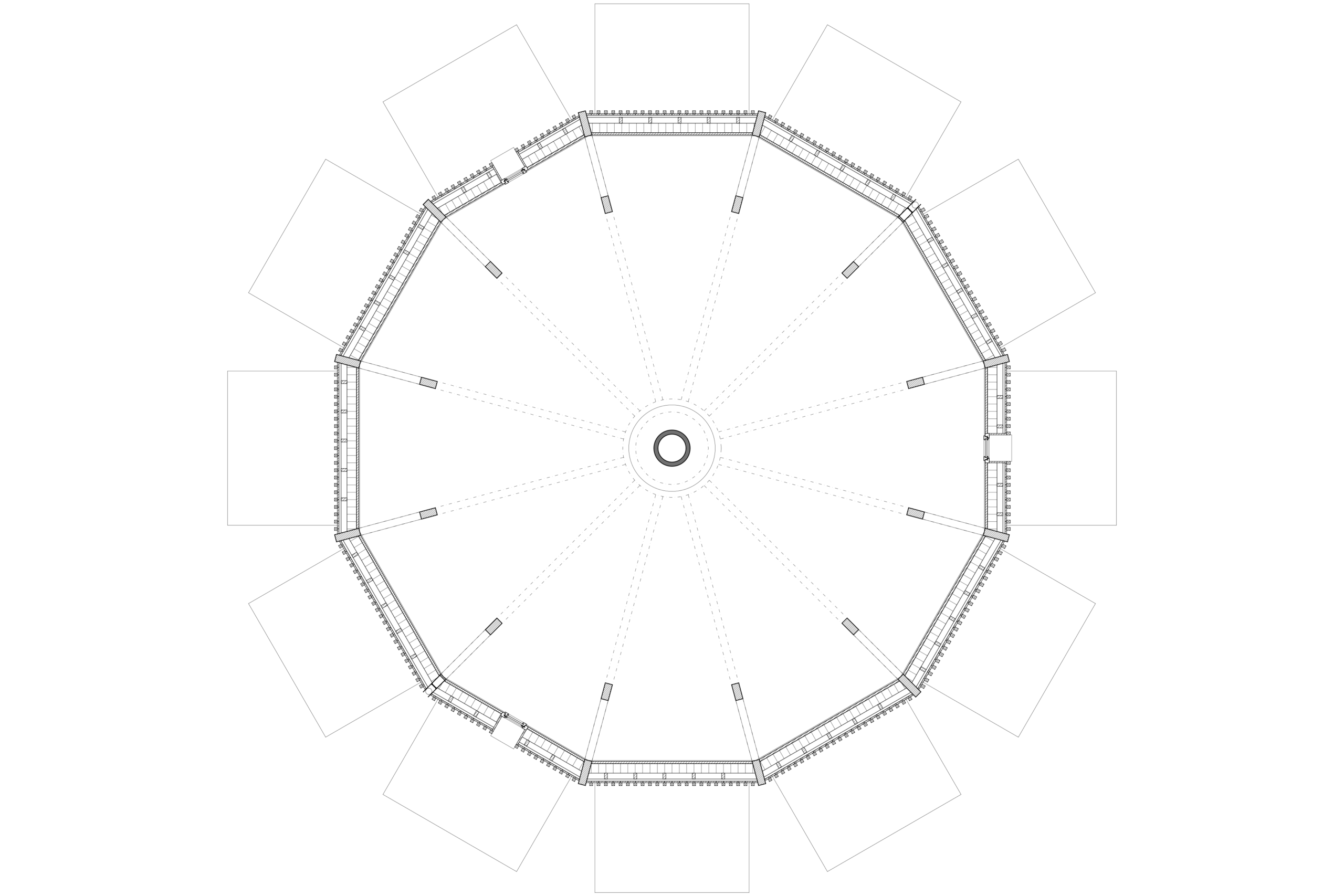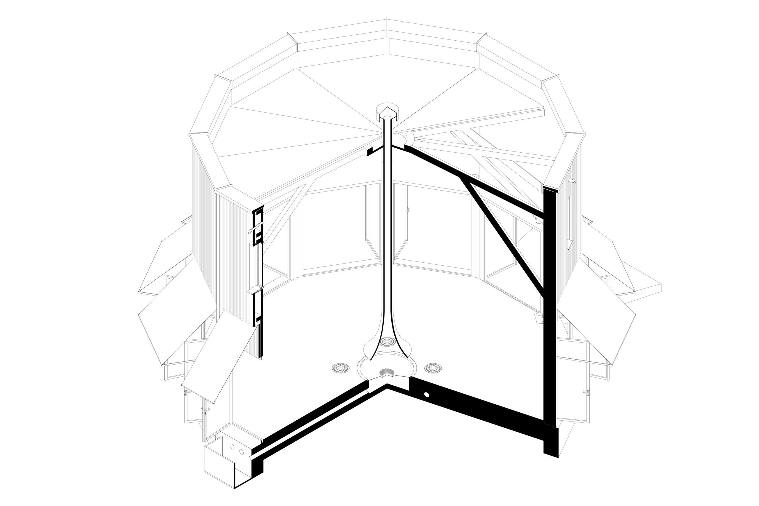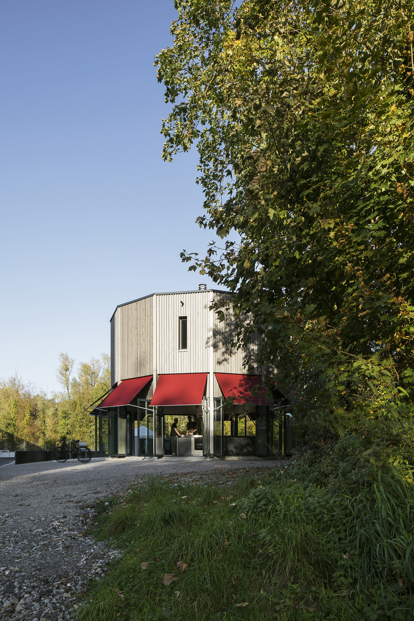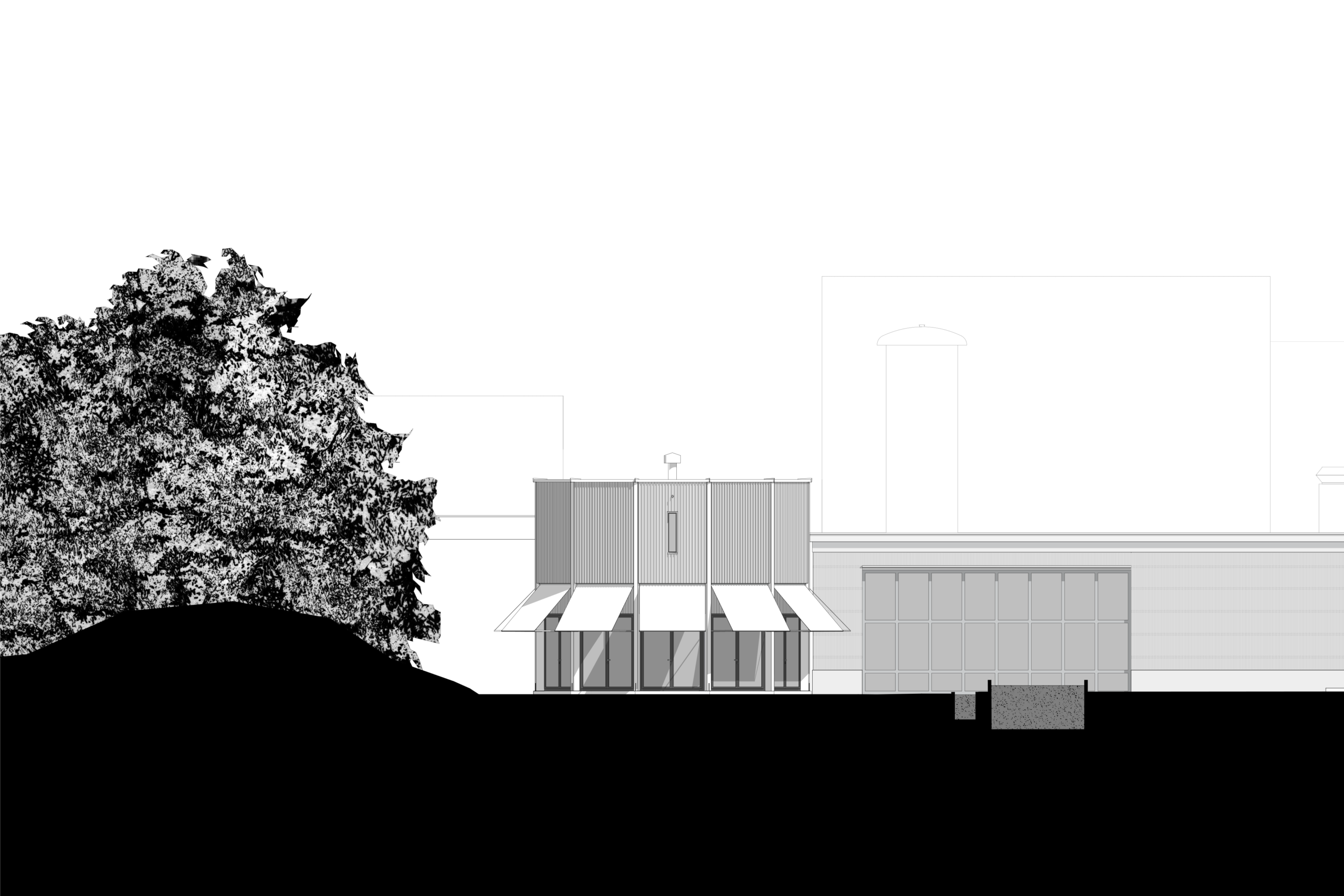 Im geschlossenen Zustand erinnert der Pavillon an die technischen Bauten der unmittelbaren Umgebung