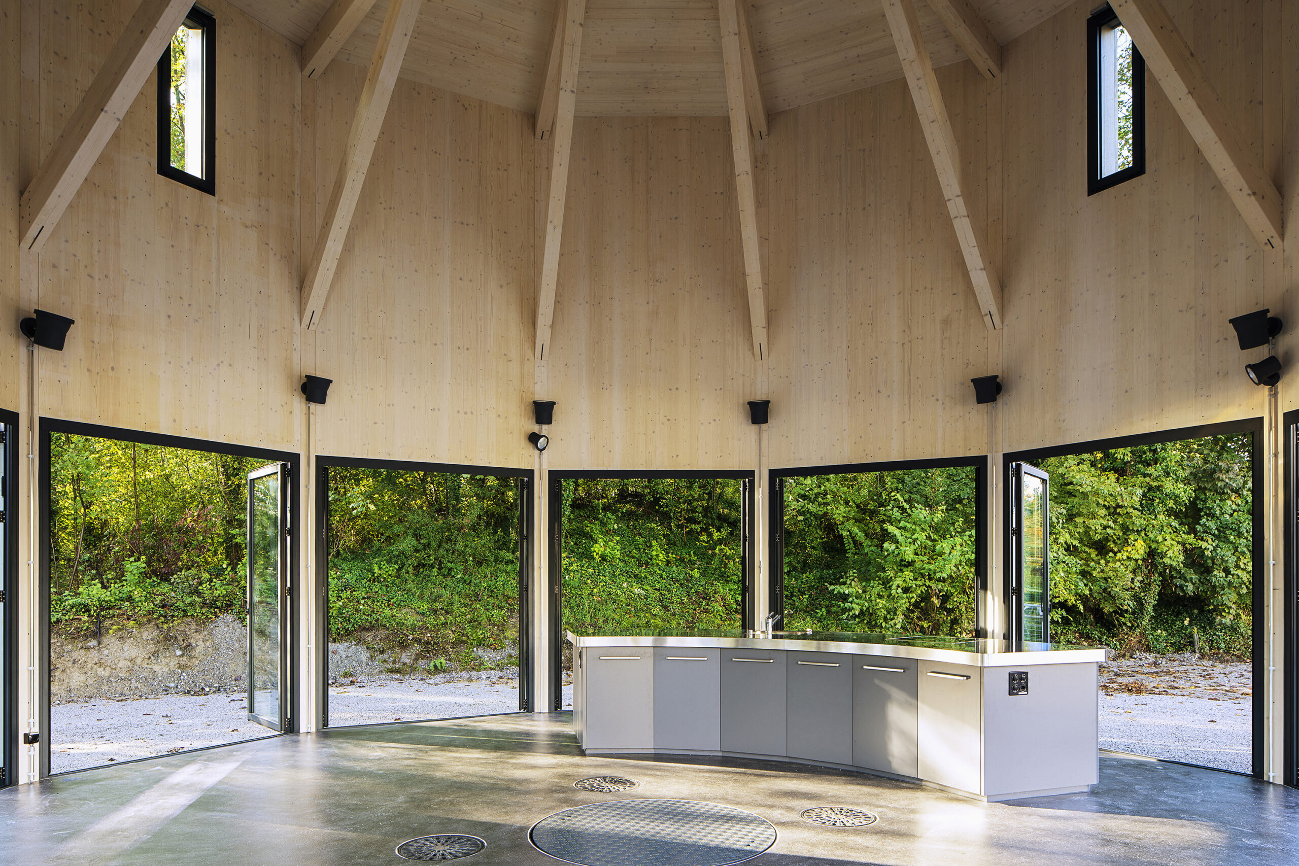 ganz geöffnet, wird der Innenraum zu einem gedeckten Aussenraum