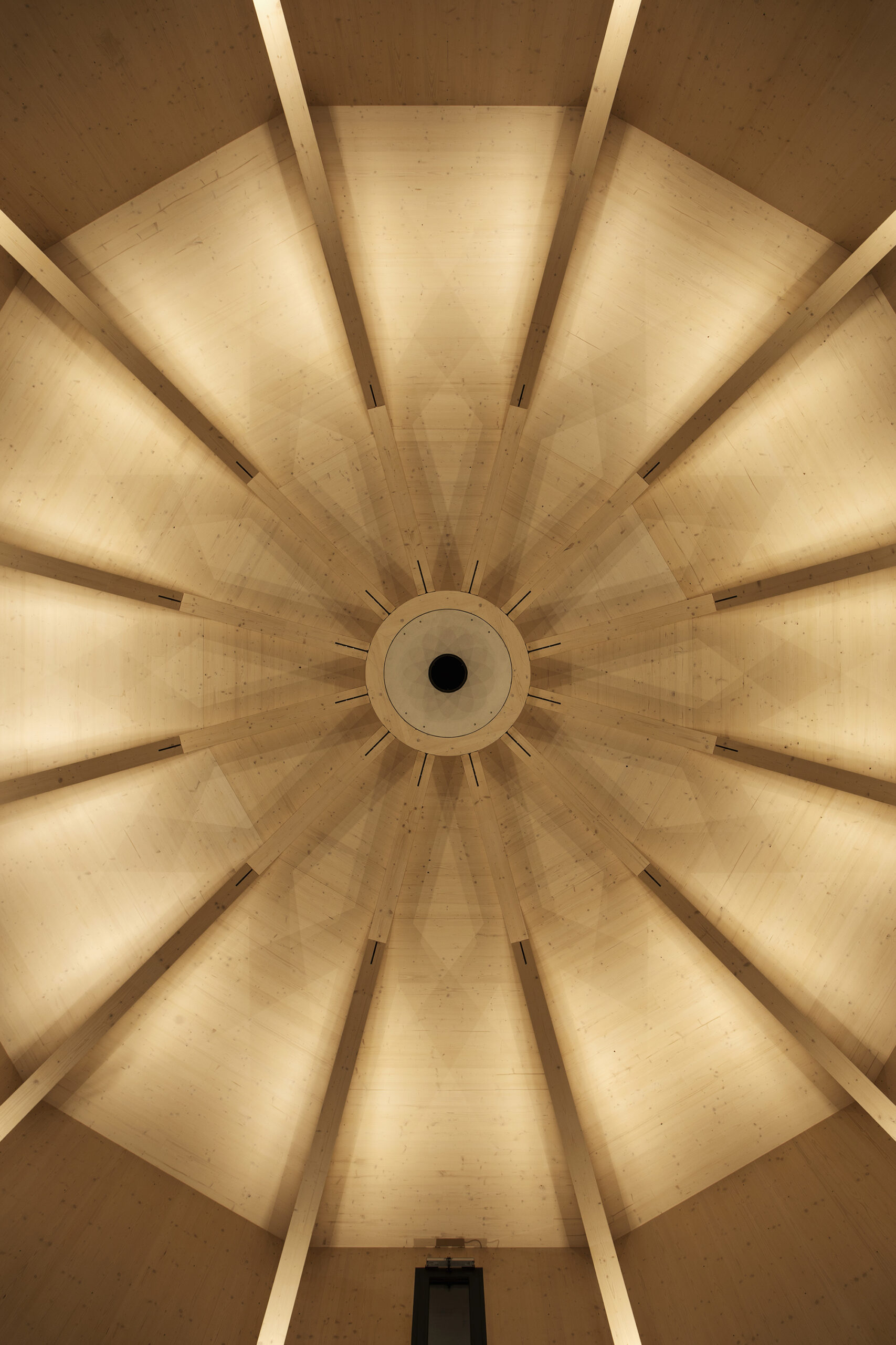 Am Abend wird der überhohe Innenraum zum Lichtraum