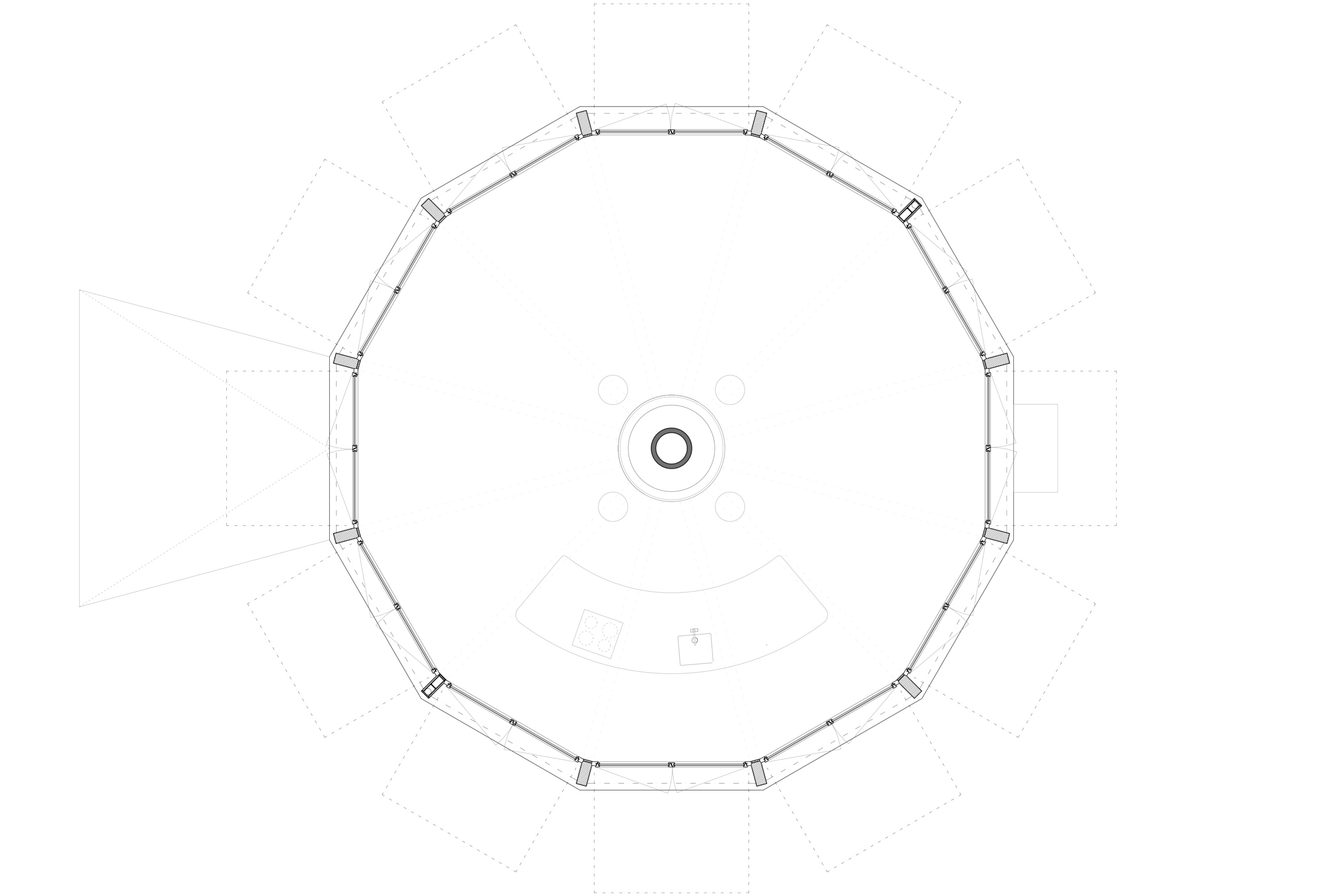 Die Ausfallmarkisen verwandeln den Pavillon in eine Blume
