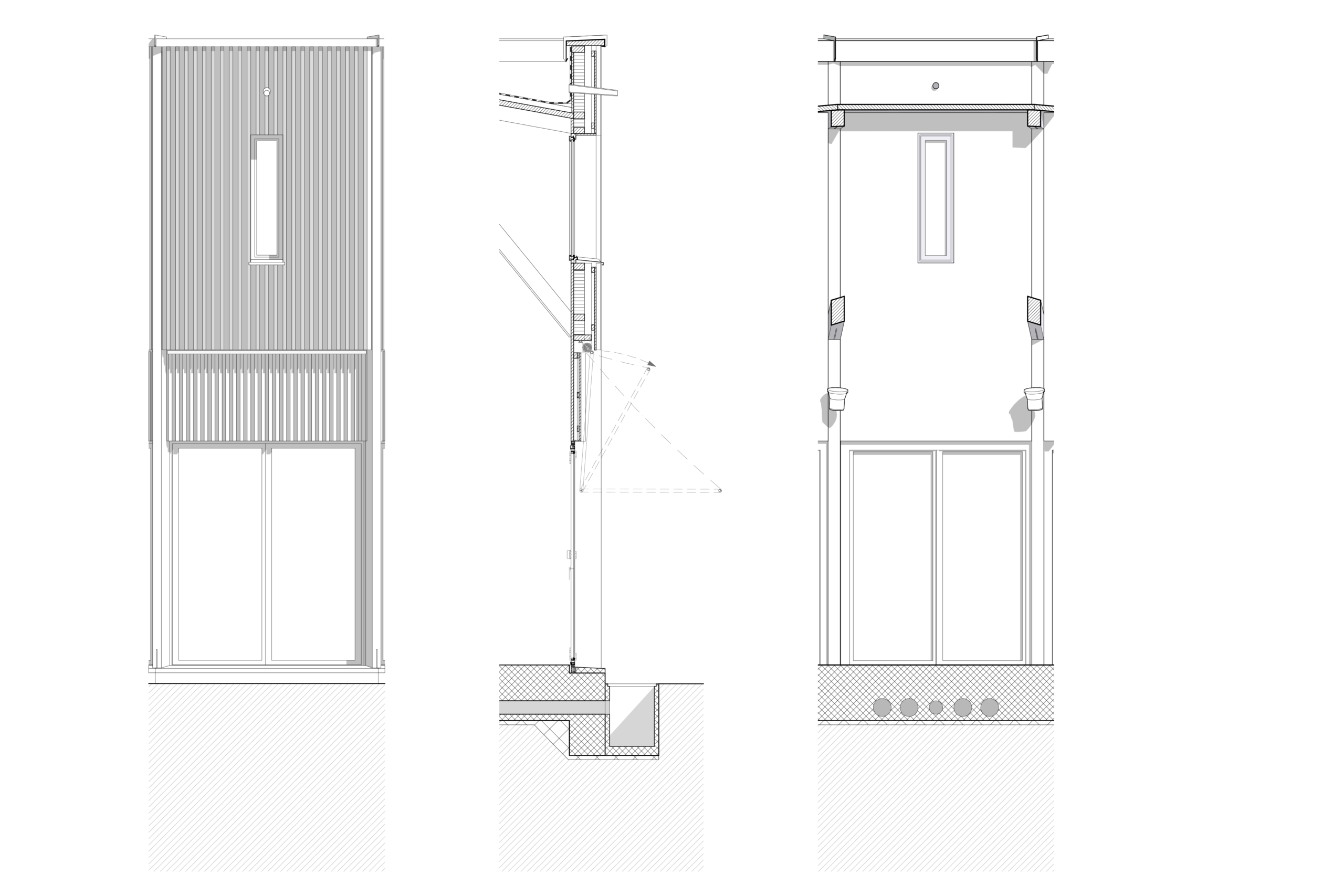 vorvergraute Fichtenschalung mit integrierten Ausfallmarkisen