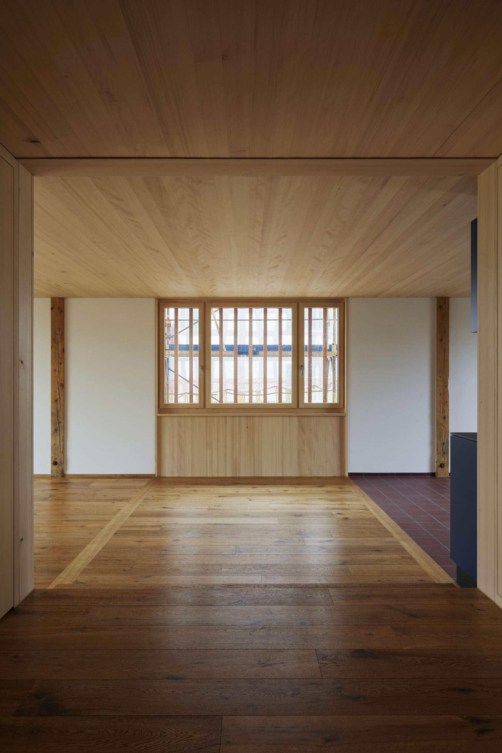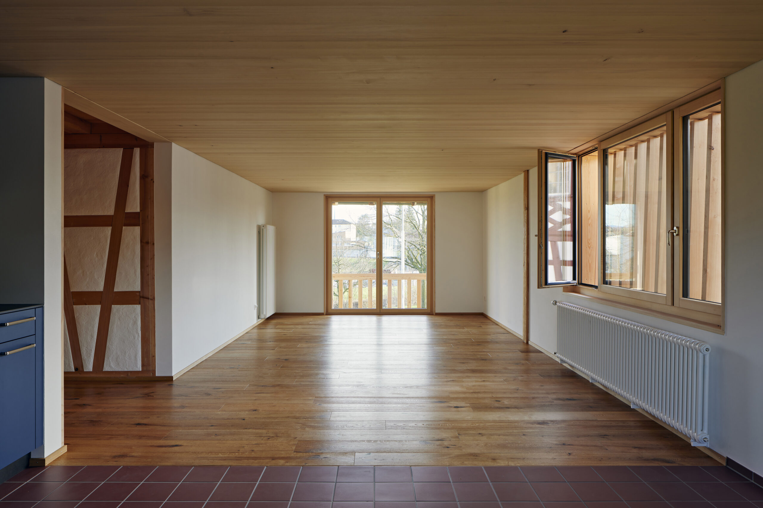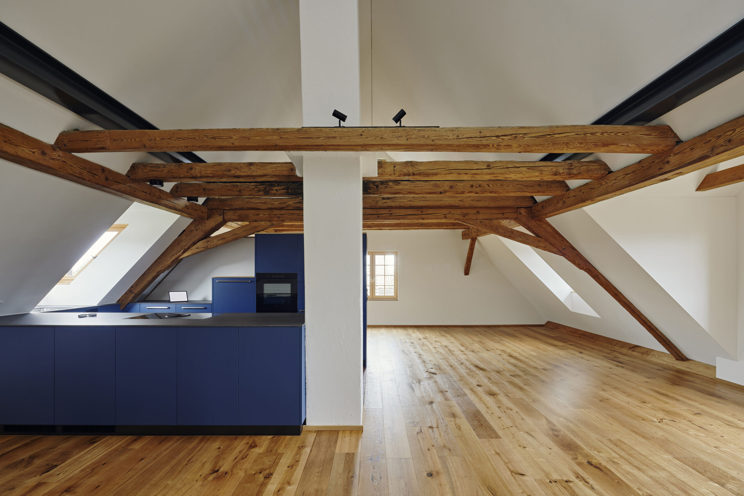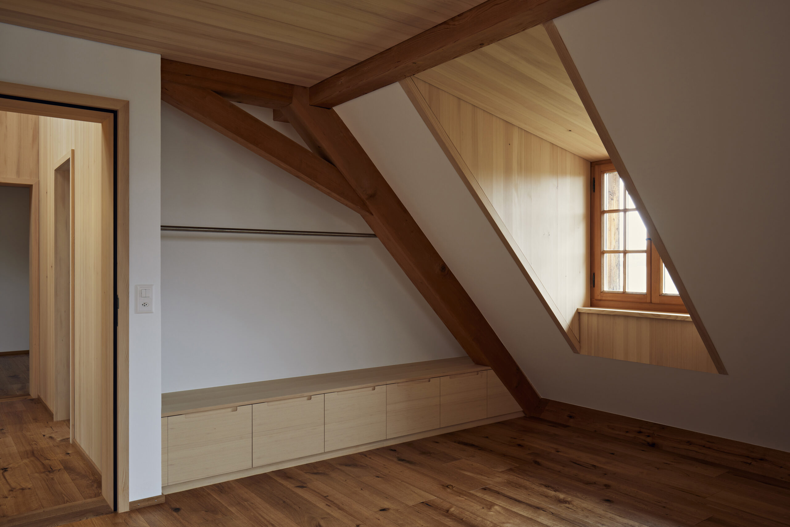 Die in den 1980er Jahren erstellte «Fachwerkzimmerwand» – ein historisch untypisches Element – wurde erhalten und integriert.