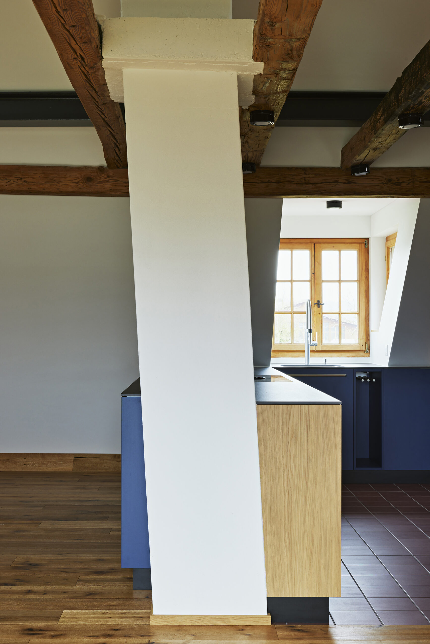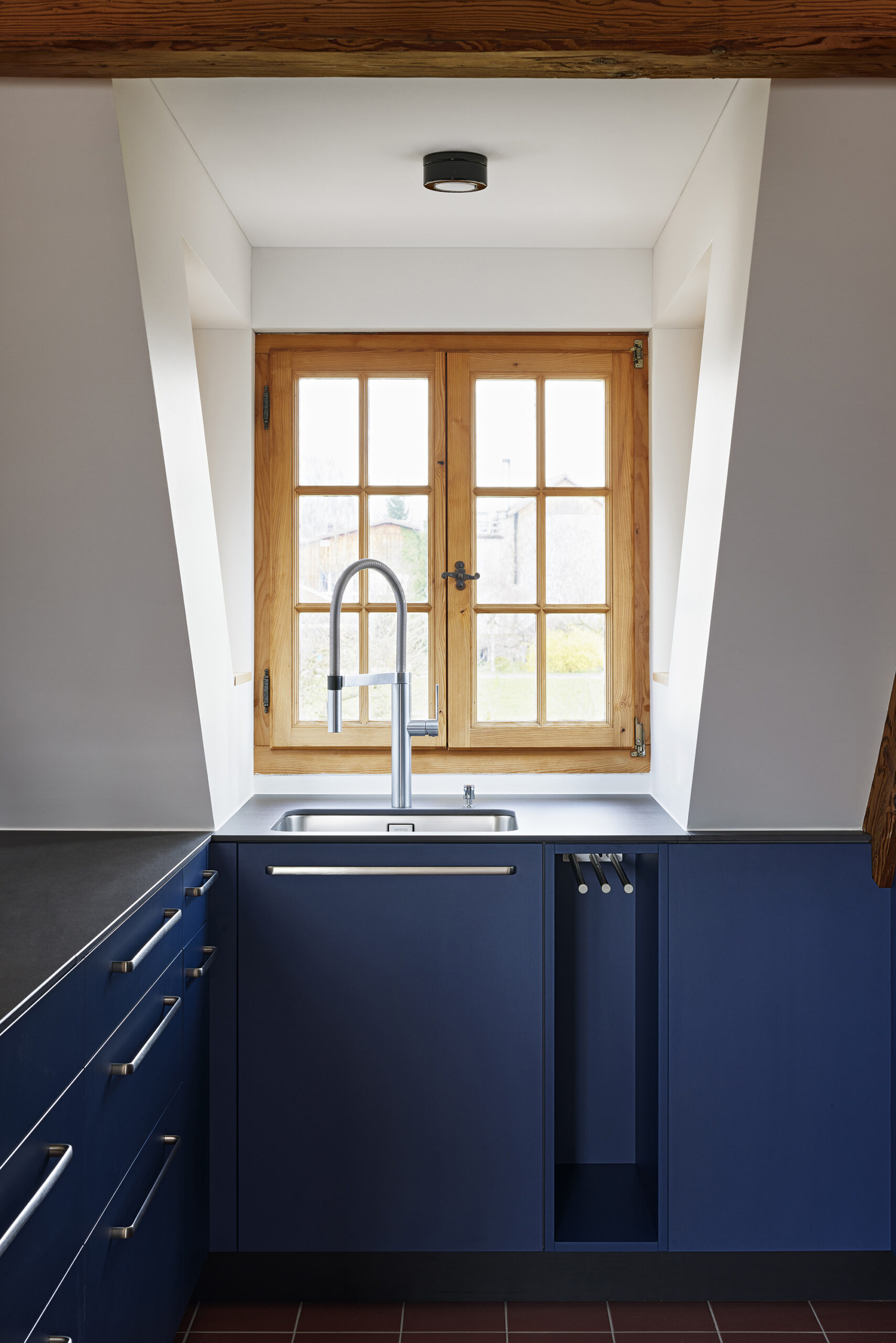 Detail der Küche in der Dachwohnung
