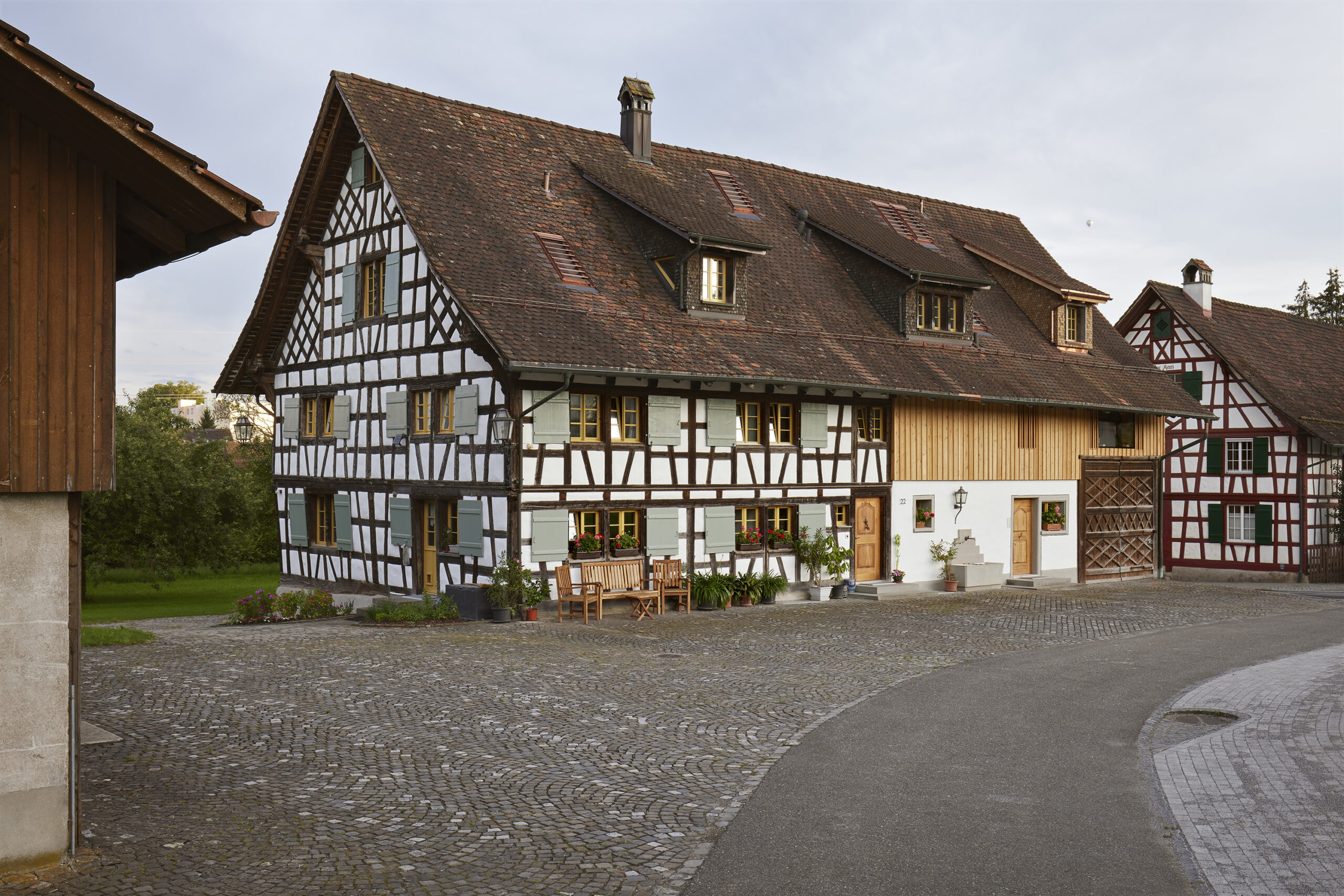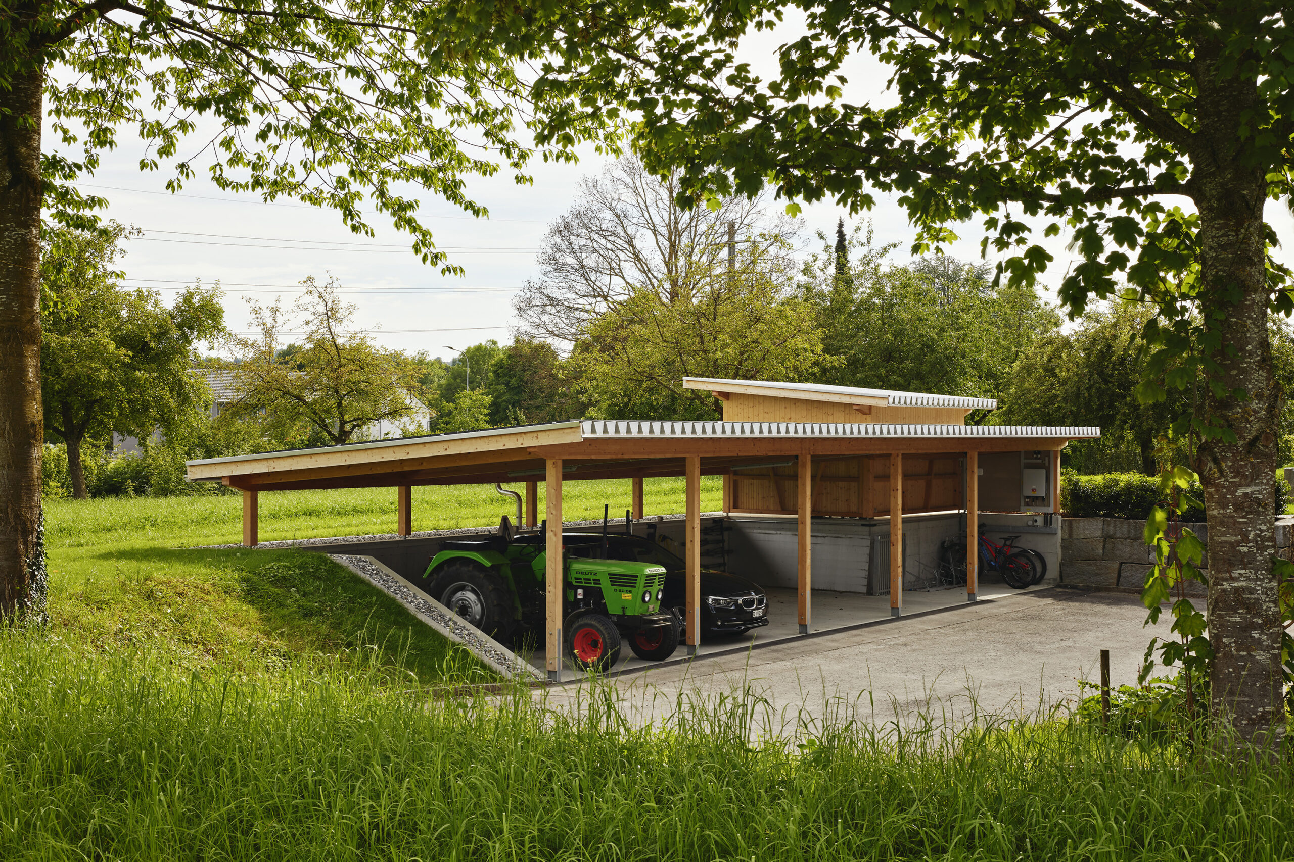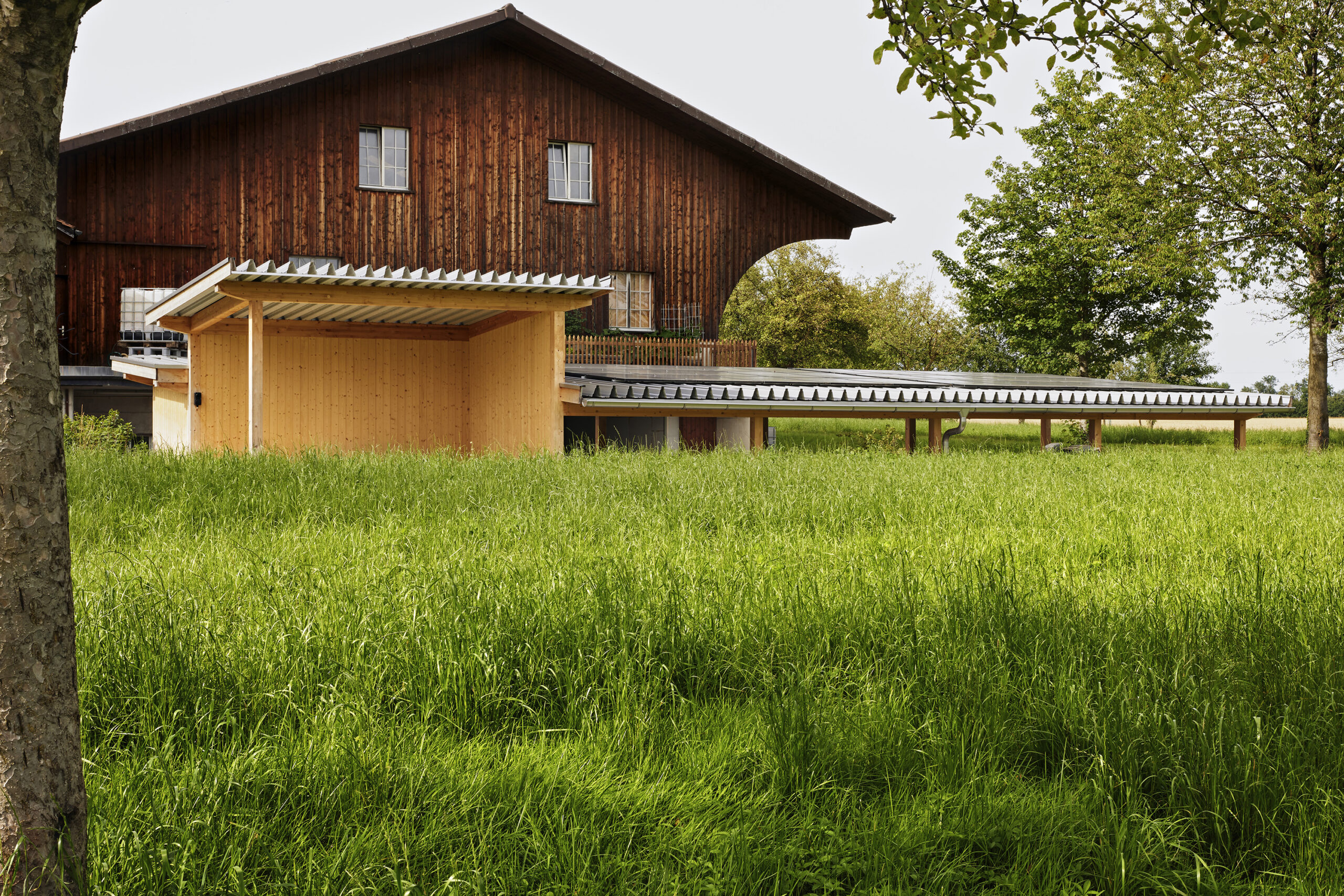 Der Betrieb wird teilweise noch landwirtschaftlich genutzt. Für die Autos der neuen Bewohnenden und für den landwirtschaftlichen Betrieb wurde ein Nebengebäude erstellt.