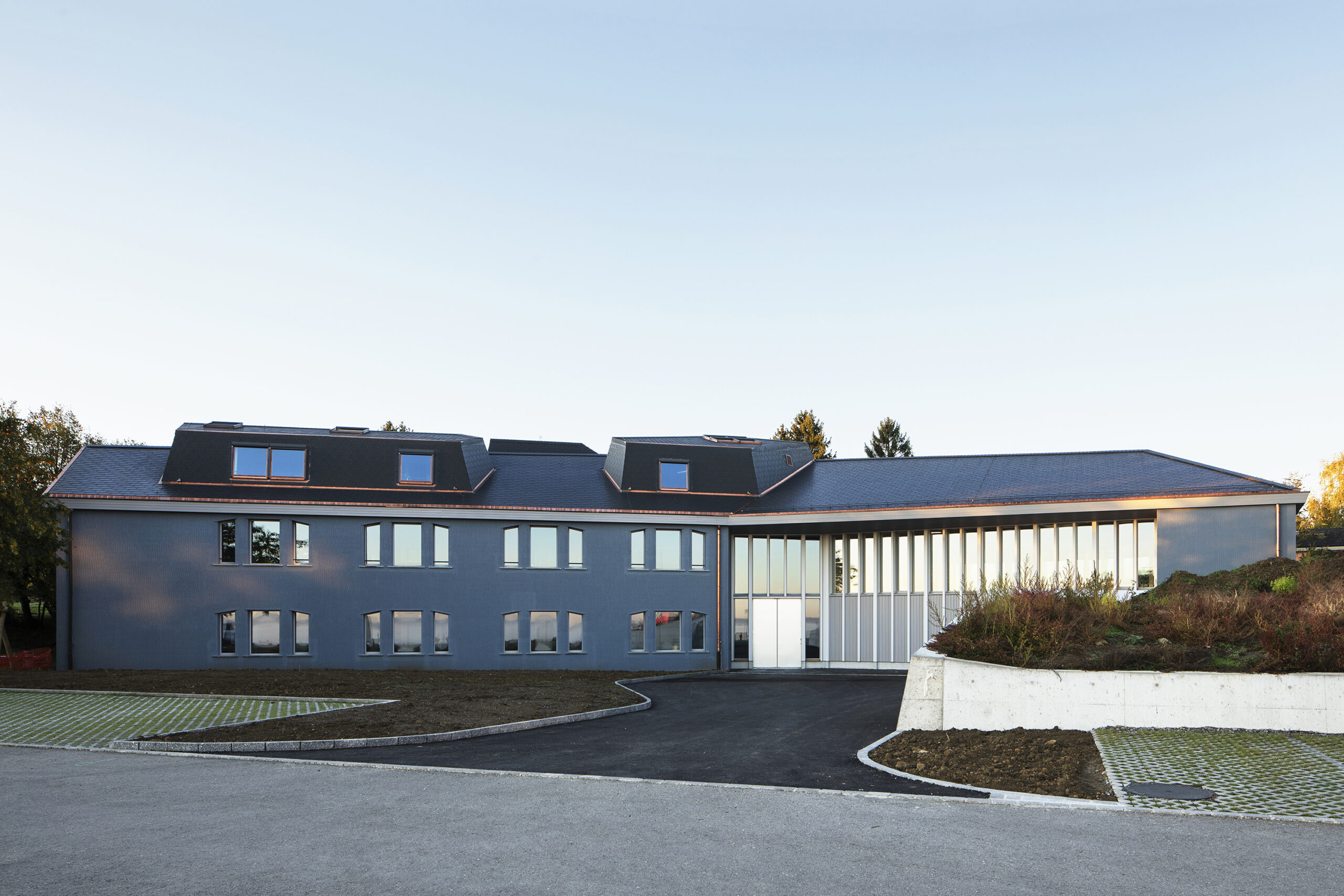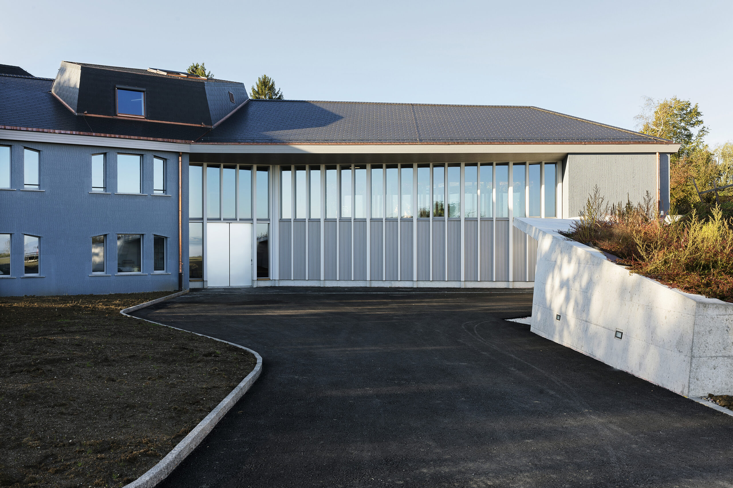 Bestand mit Aufstockung (links) und Anbau (rechts)