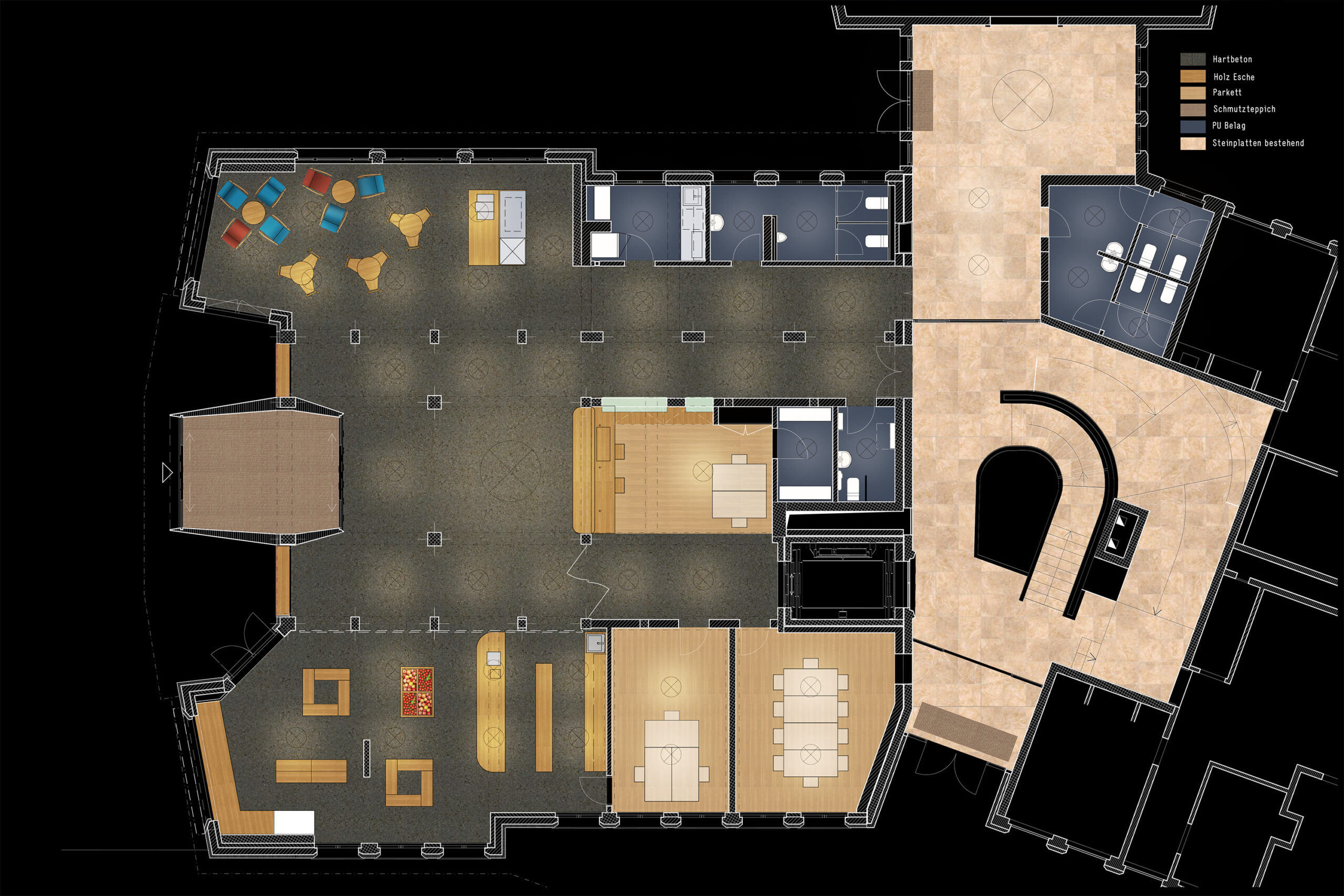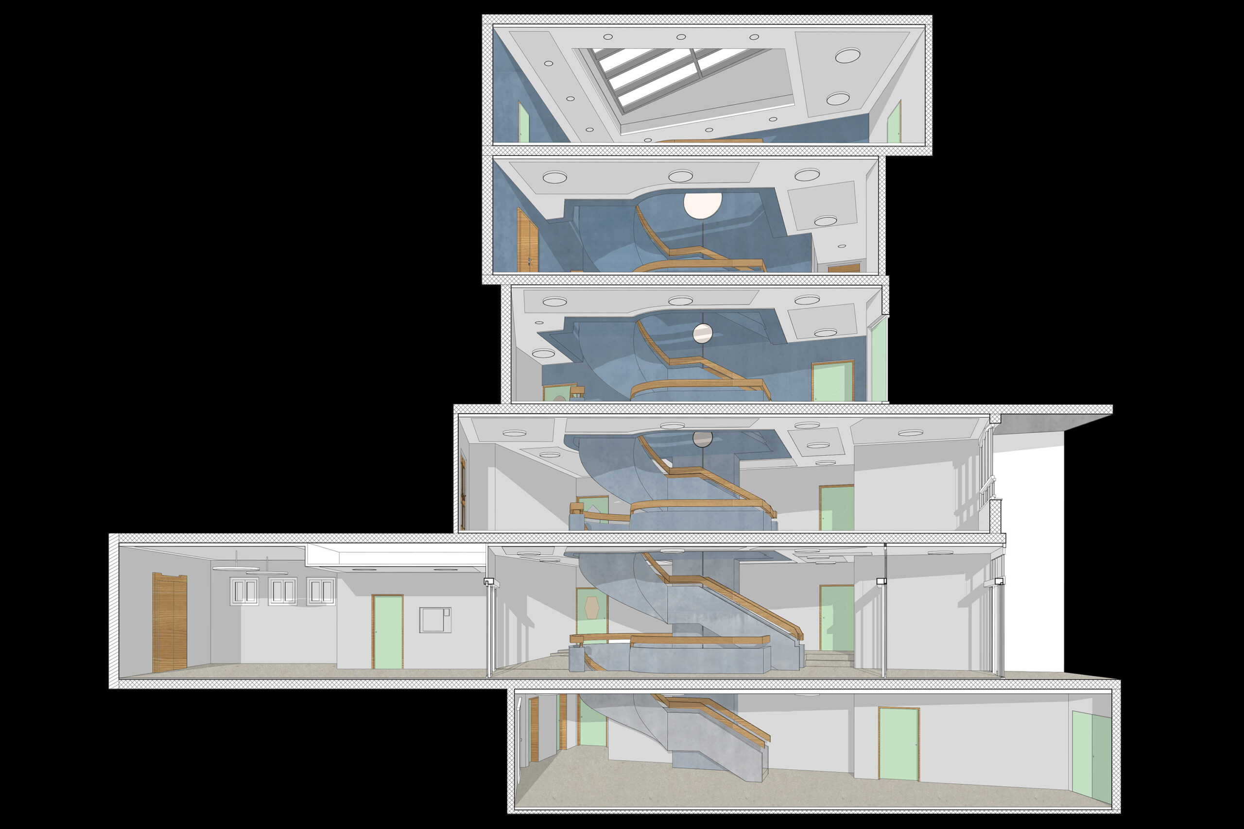 Neben einer tiefgreifenden Brandschutzertüchtigung wurde das Treppenhaus auch neu gefasst.
