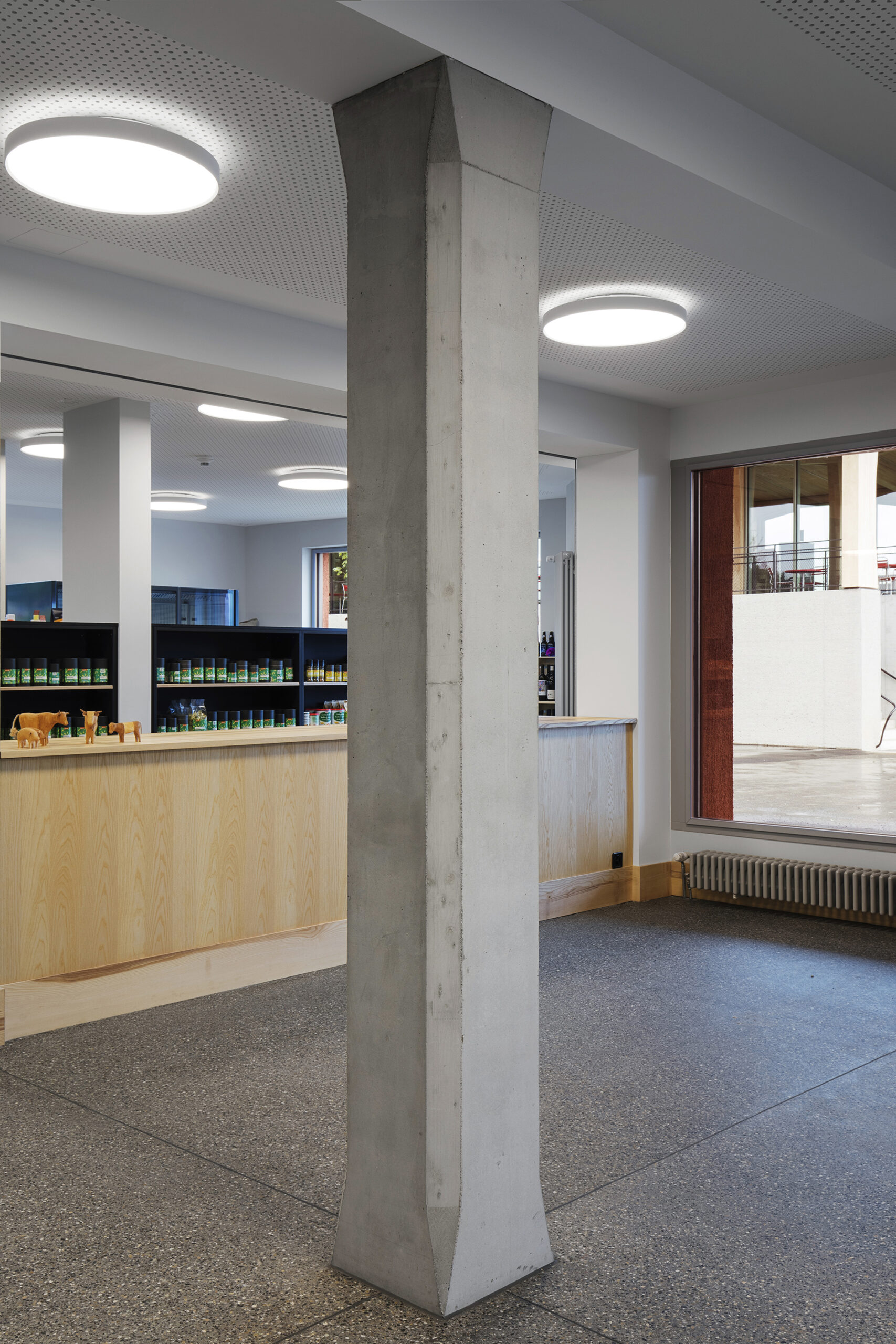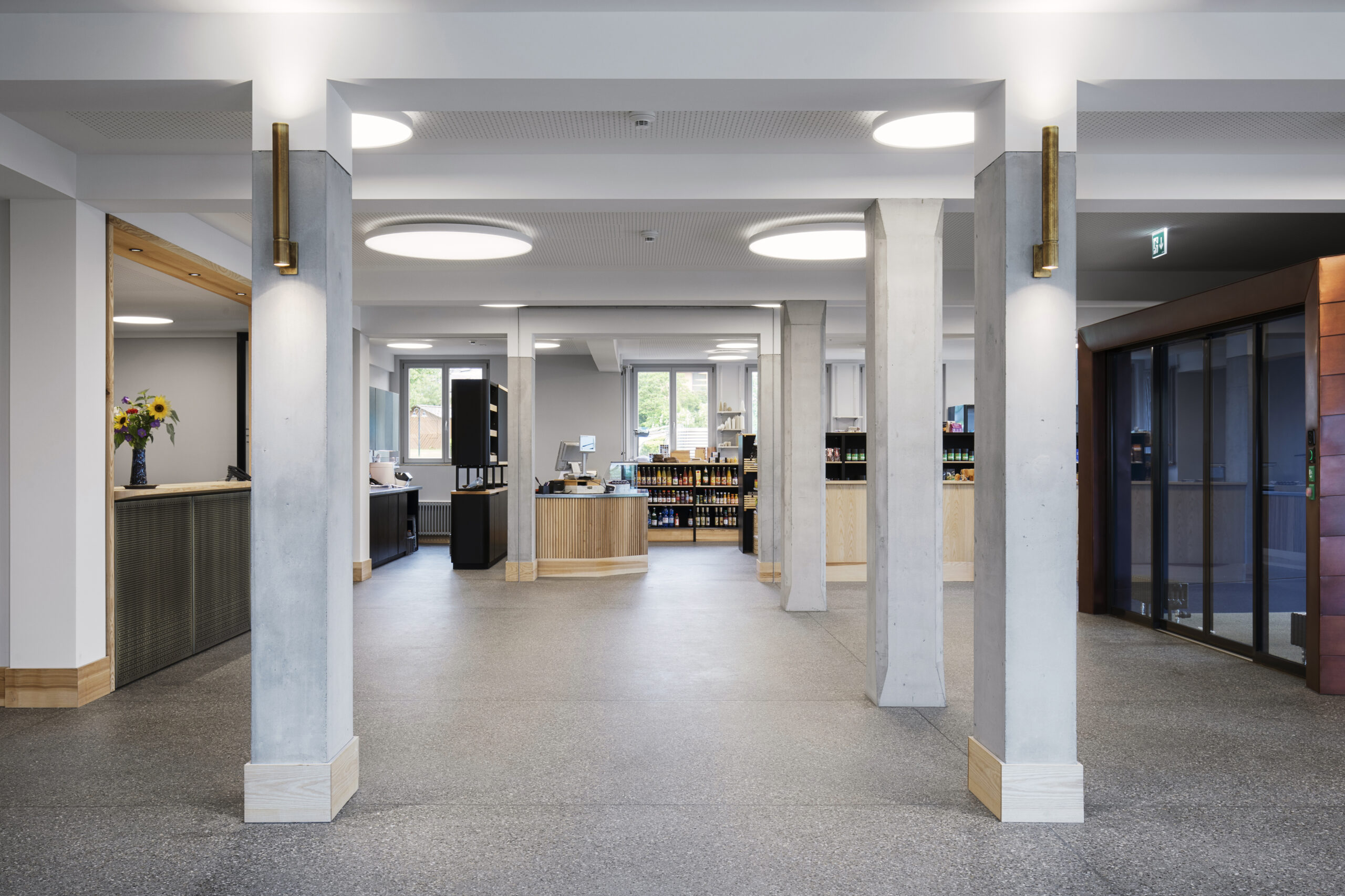 Der ehemals stark verbaute Raum sollte offener wirken. Allerdings liegt unter dem Raum ein Schwimmbad, darüber vier Geschosse Wohnungen – der Lastabtrag war eine Herausforderung.