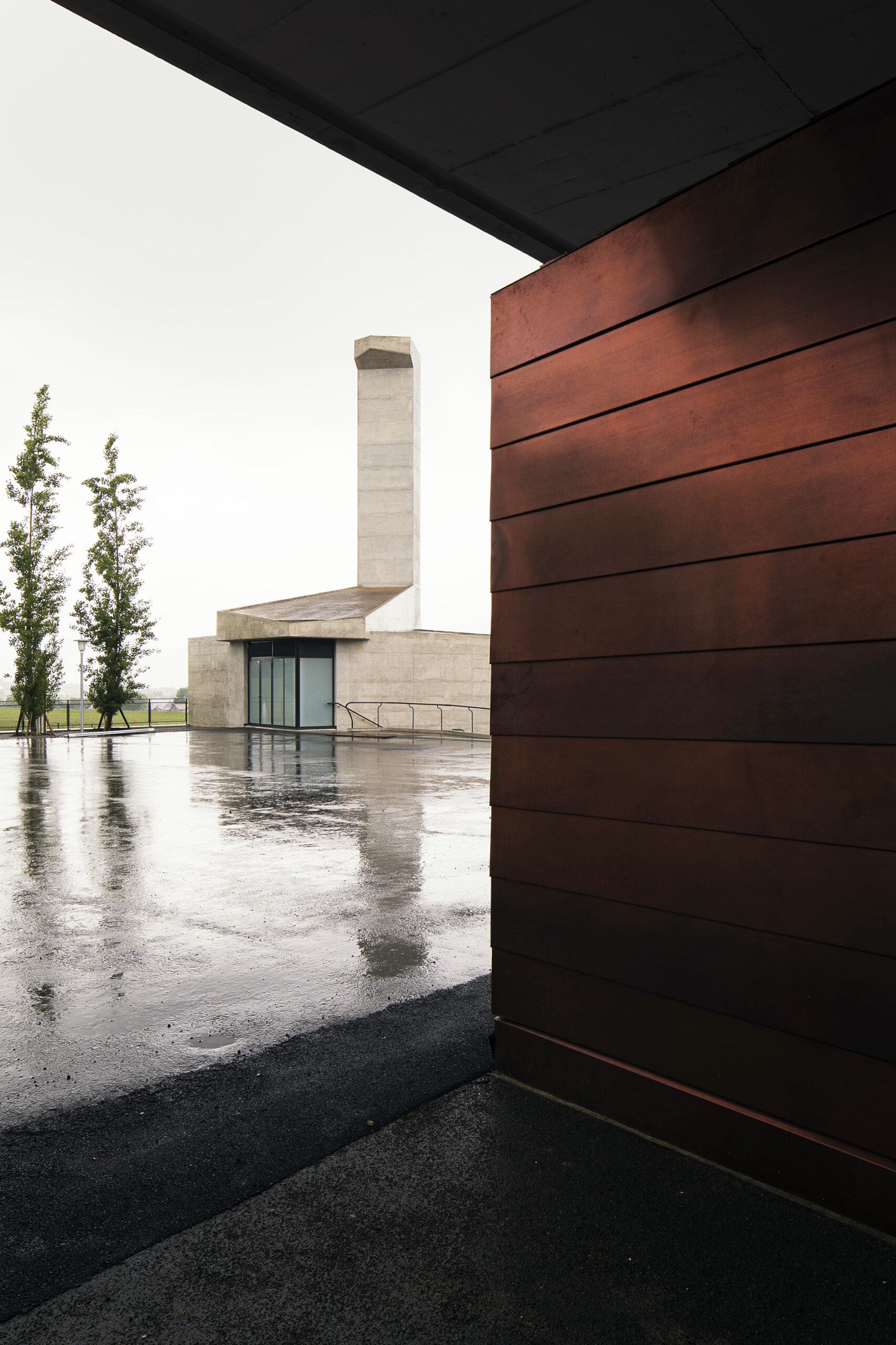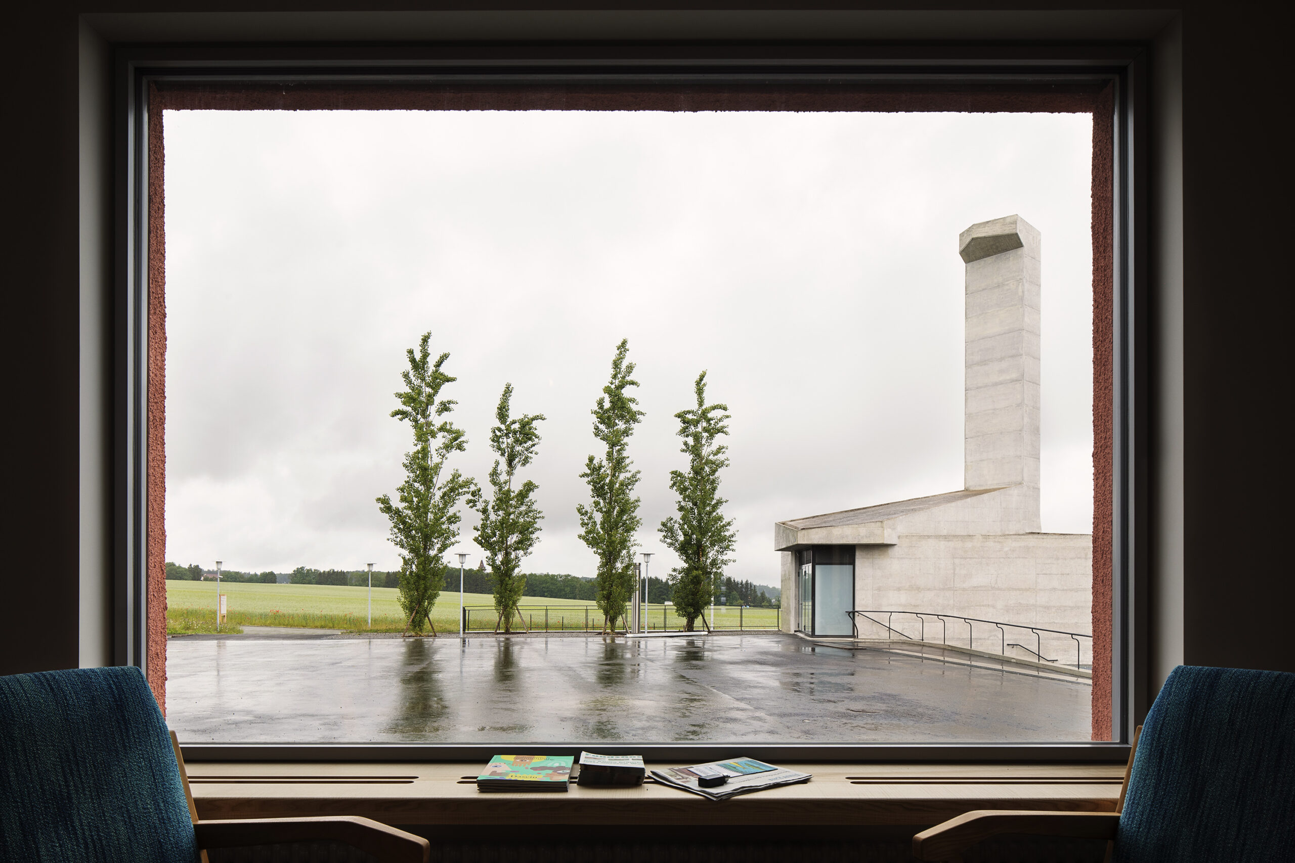 Im Hintergrund das sanierte und erweiterte Heizungsgebäude