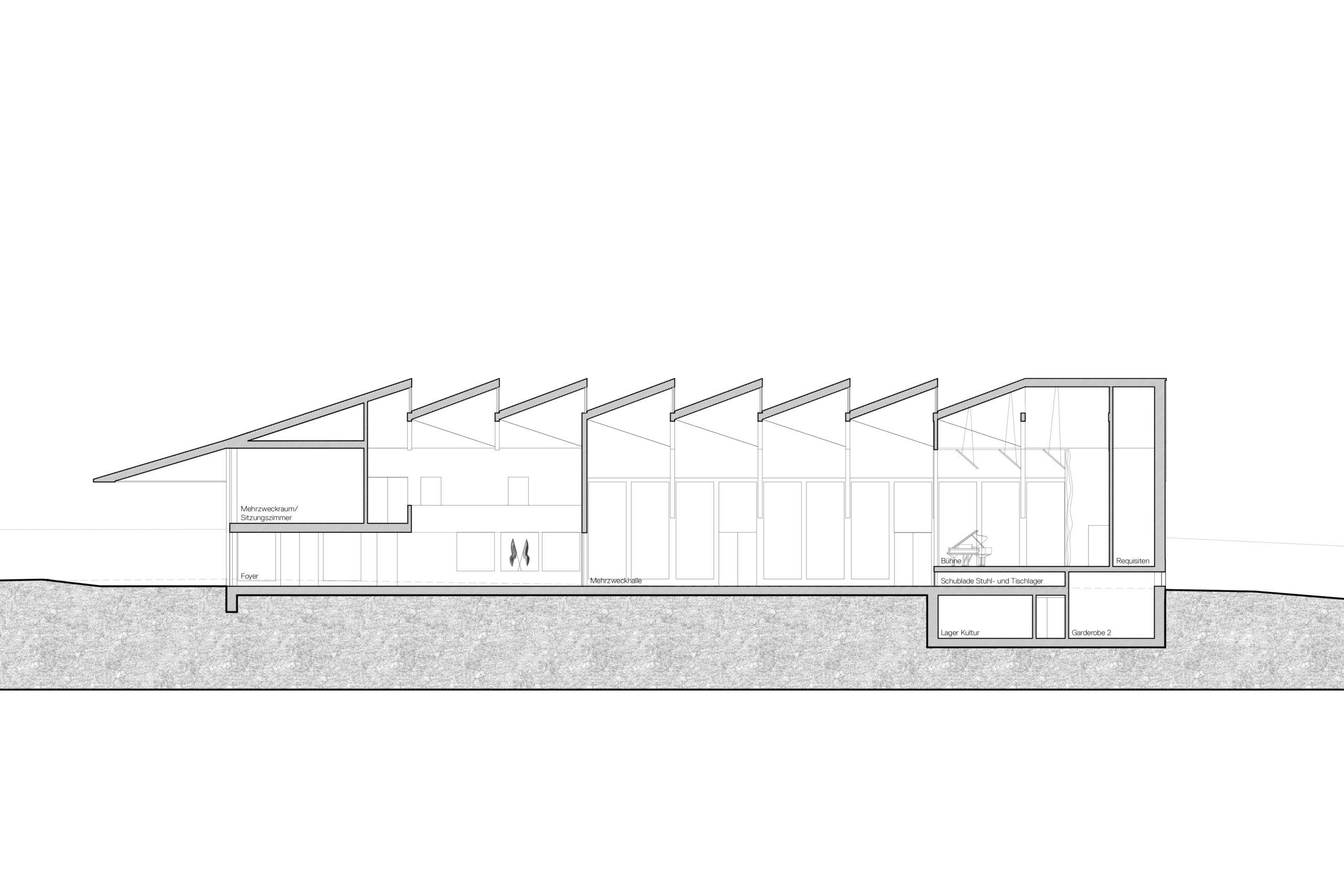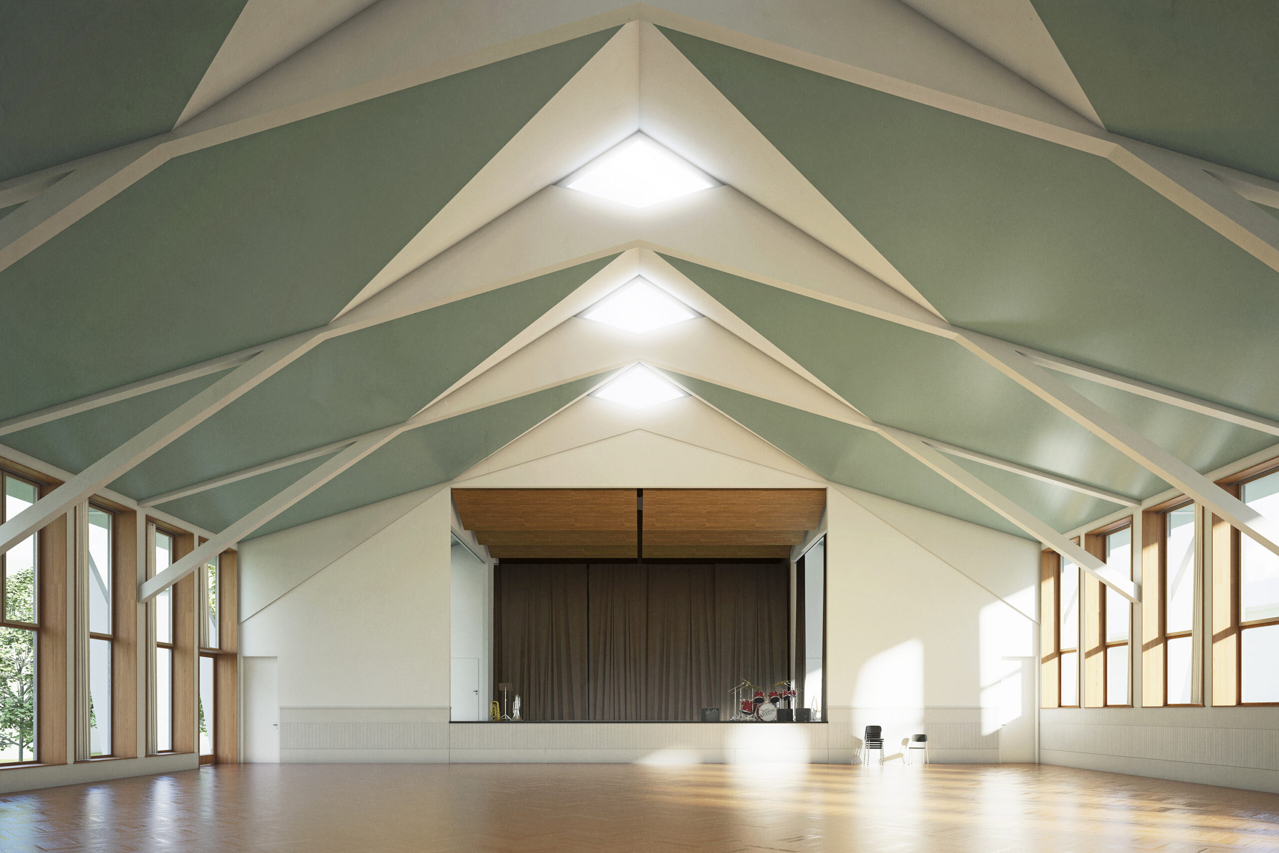 Wettbewerbsprojekt für eine neue Mehrzweck- und Kulturhalle mit Musikschule und Vereinsräumen in Holzbauweise
